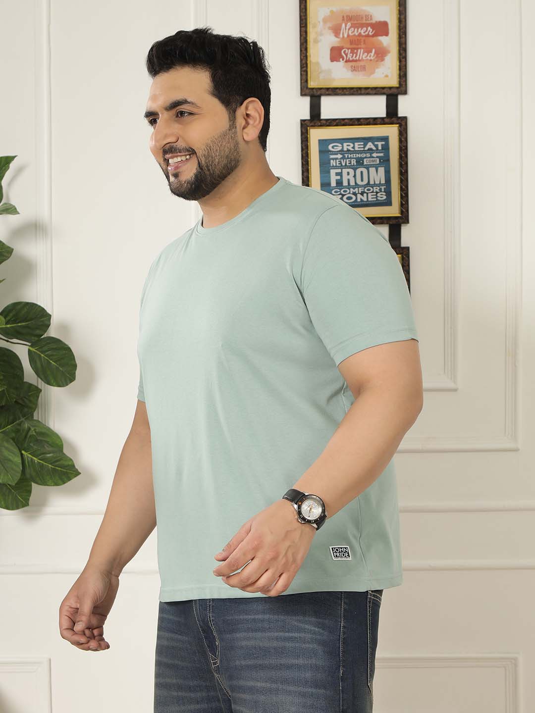 The Basil Prime Tee delivers a fresh, minimal style with everyday comfort. Made from a durable blend of 80% Cotton and 20% Polyester, it offers a soft feel with great shape retention. Designed with a solid pattern and classic round neck, this versatile T-shirt pairs easily with jeans, joggers, or shorts for a clean casual look.