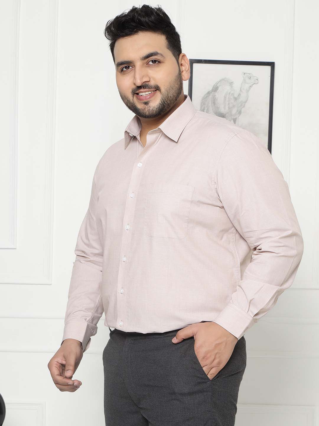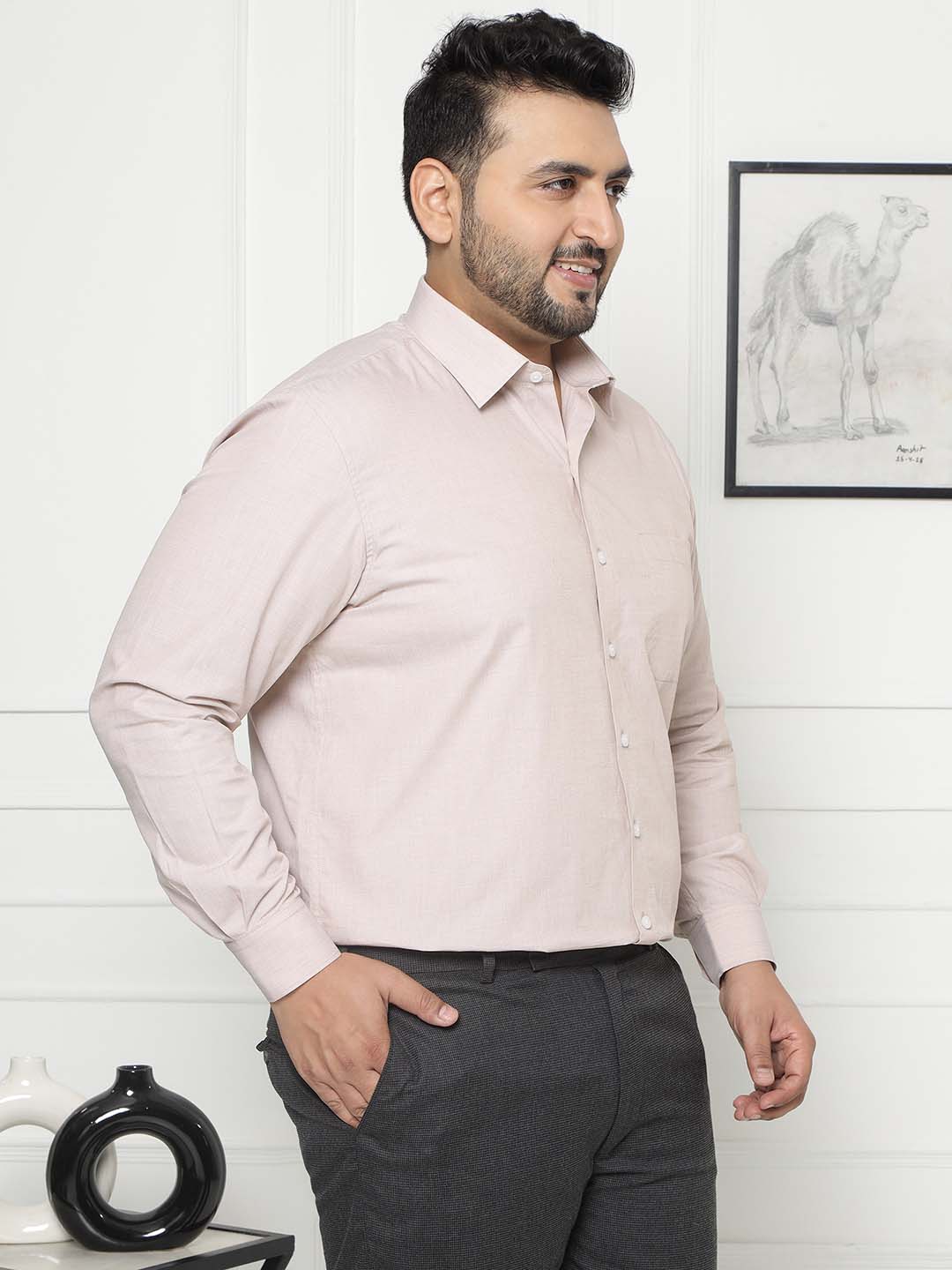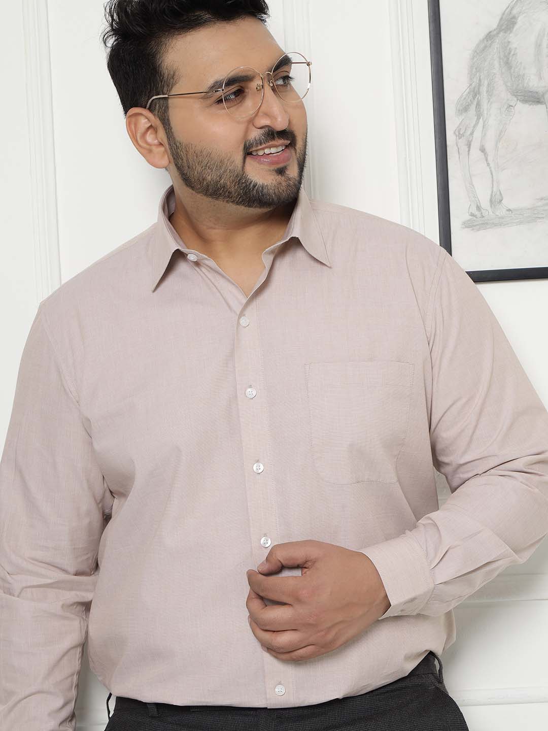 A refined beige formal shirt crafted from 100% cotton for all-day comfort. Its crisp design and smooth texture make it perfect for office or business occasions. Stay effortlessly polished and confident in this timeless essential.