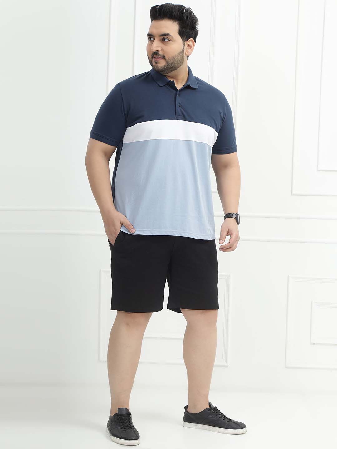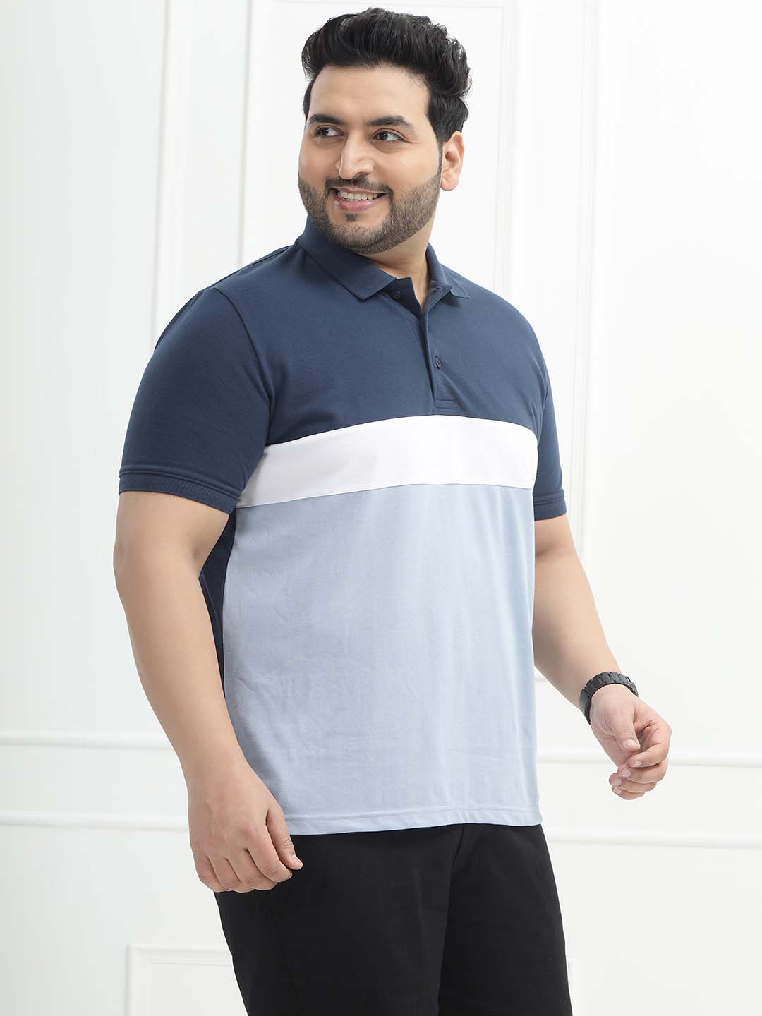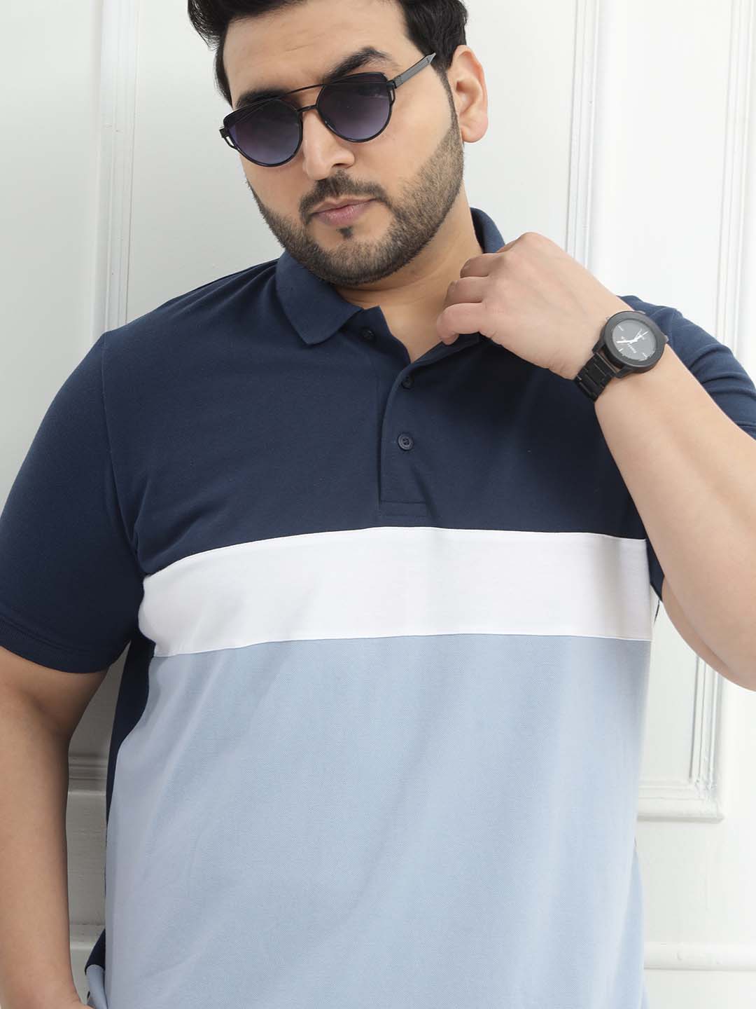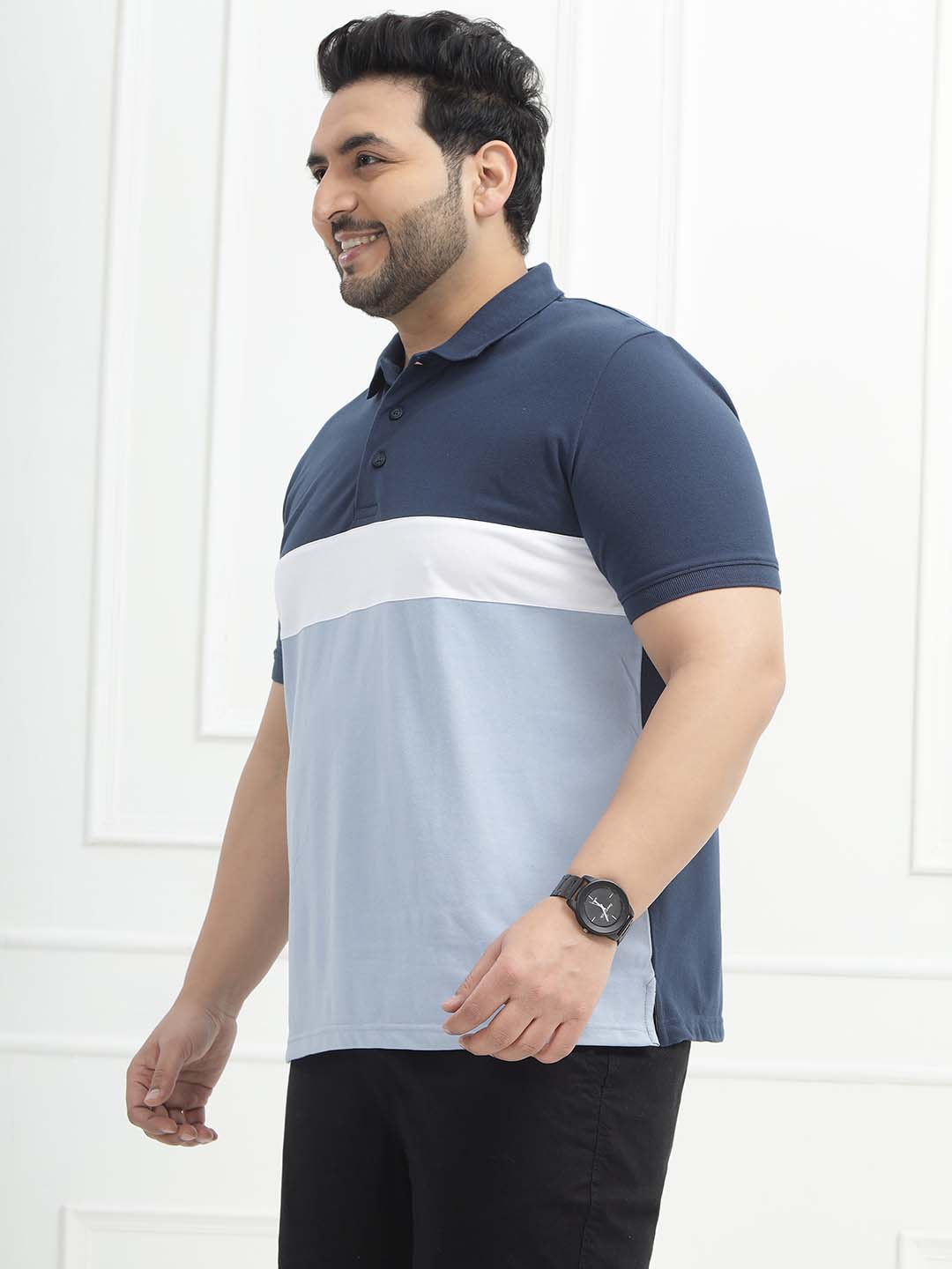 The Blue Horizon Polo features a refreshing colorblock design in dark blue, white, and light blue, giving it a cool and modern appeal. Made from a comfortable 80% cotton and 20% polyester blend, it offers breathability with added durability and shape retention. Ideal for casual outings, weekend wear, or smart-casual looks, this polo combines sporty style with all-day comfort.