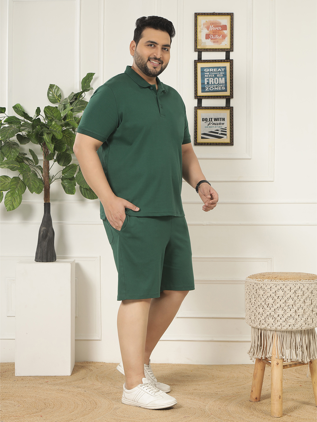 Upgrade your casual wardrobe with the Forest Flex Co-ord Set, designed for modern comfort and effortless style. Crafted from a premium blend of 97% Cotton and 3% Elastane, this stretchable fabric ensures flexibility and all-day comfort. The set includes a polo T-shirt paired with matching shorts, featuring three functional pockets and an elasticated waistband with adjustable drawcord for a secure and relaxed fit. Perfect for casual outings, travel, or weekend wear, this co-ord set offers a clean and sporty look.
