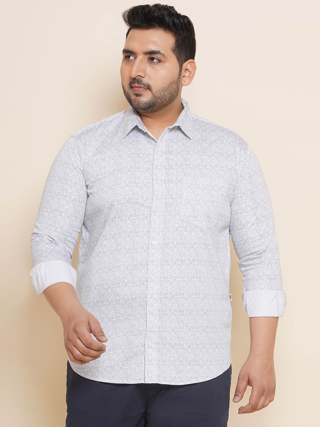 Truly a year-round wardrobe essential, this printed shirt comes in a clean, classic pattern to lend elegance and sophistication every time. Also, this full-sleeved shirt is cut and stitched in breathable cotton fabric, ensuring a soft feel with unmatched wearing comfort throughout the day. Team it with any chinos, trousers, or jeans to look your impressive best.