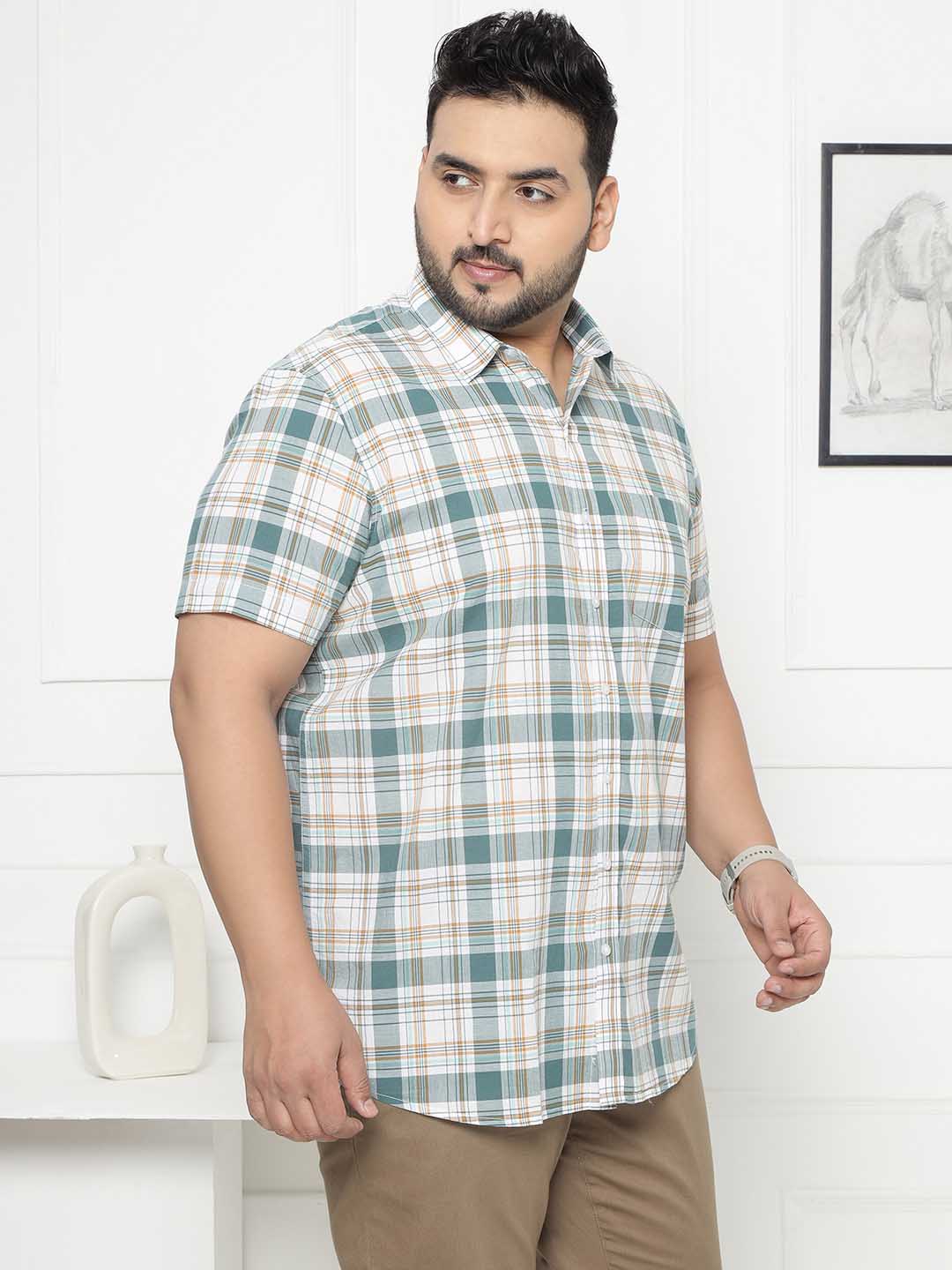 Keep it cool and casual with this half-sleeve checked shirt. Made from 100% breathable cotton for day-long comfort. Perfect for a laid-back weekend or a smart casual look. Pair it with chinos or jeans for an effortlessly stylish vibe.