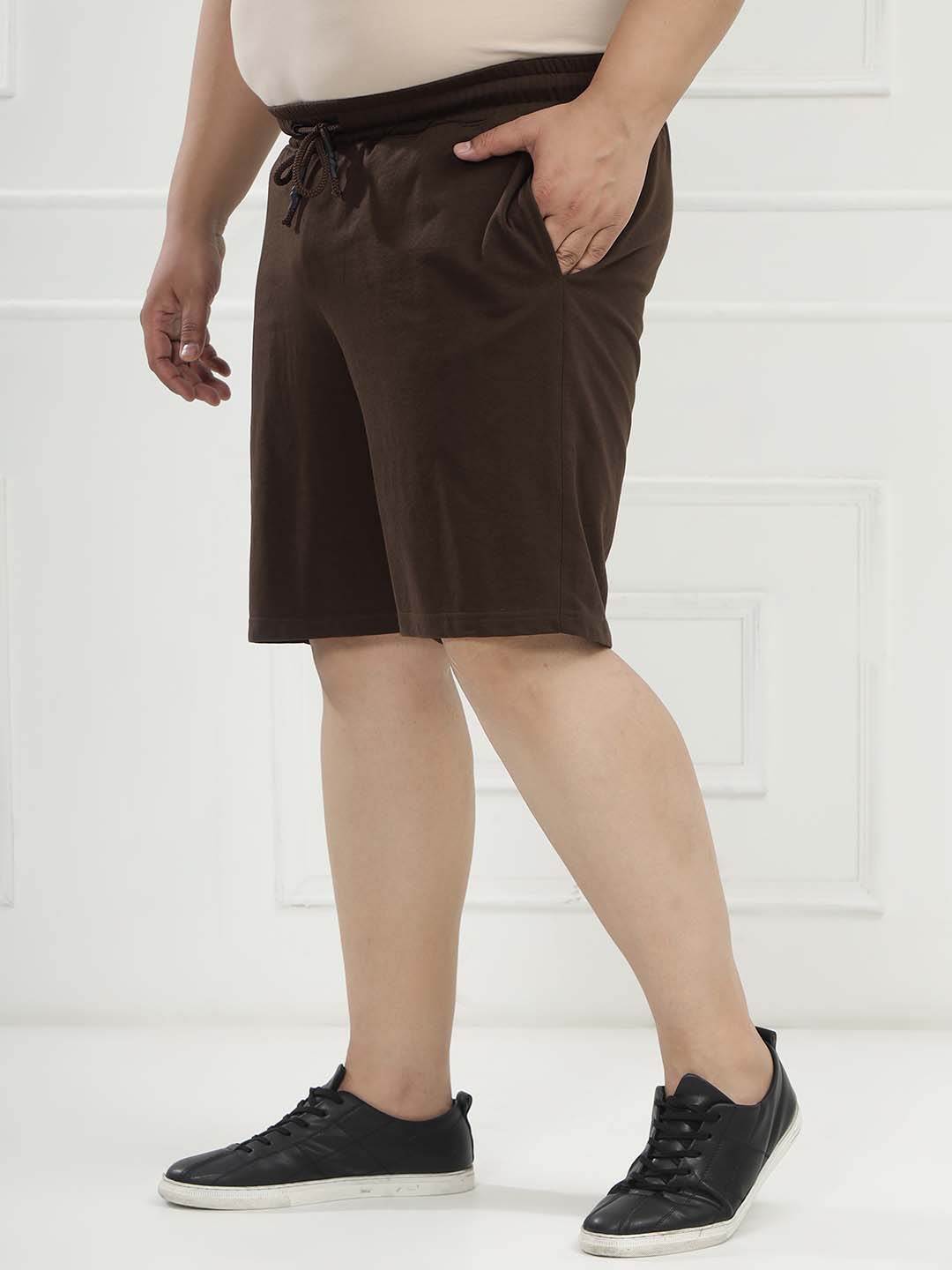 Stay effortlessly comfortable with these brown solid knitted cotton shorts, designed for relaxed everyday wear. Featuring an elasticated waistband with an adjustable drawcord, they offer a flexible and secure fit. Crafted from soft knitted cotton fabric, these shorts come with practical front pockets and a single back pocket—perfect for casual days, lounging, or on-the-go comfort.