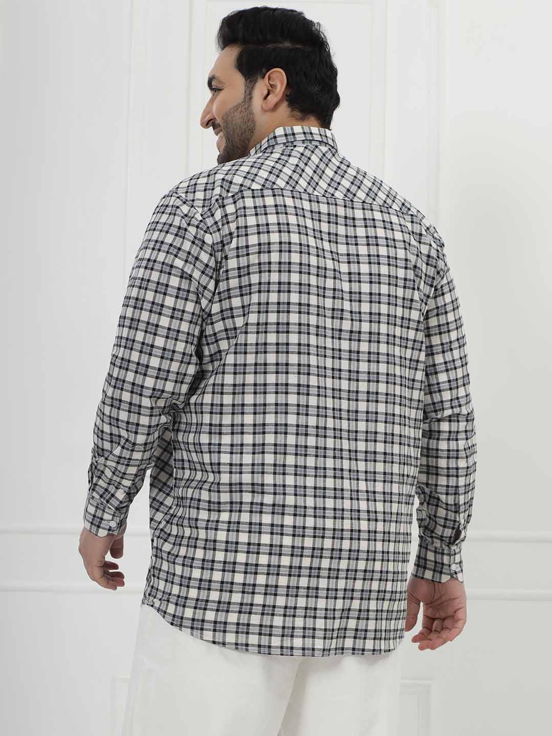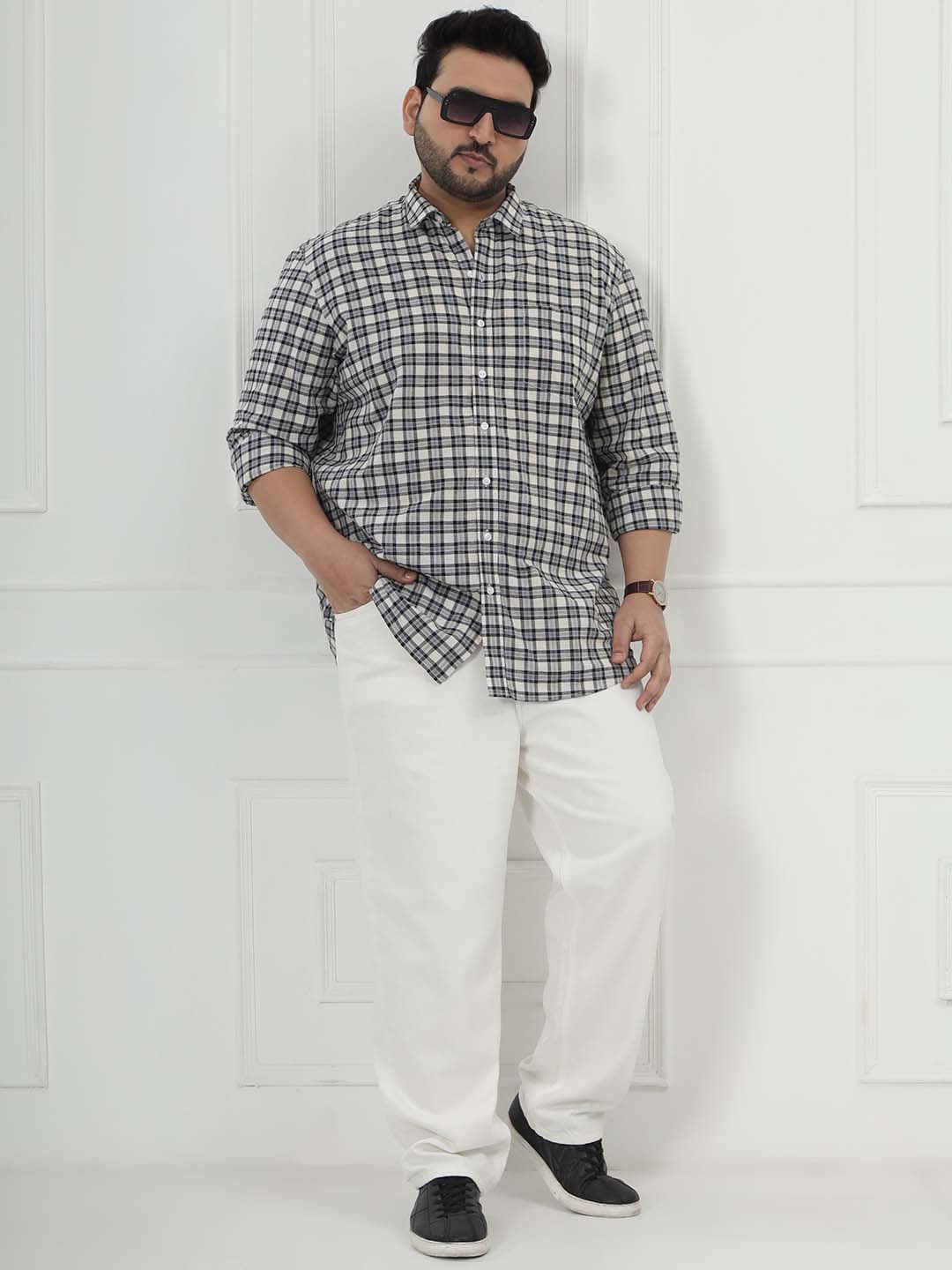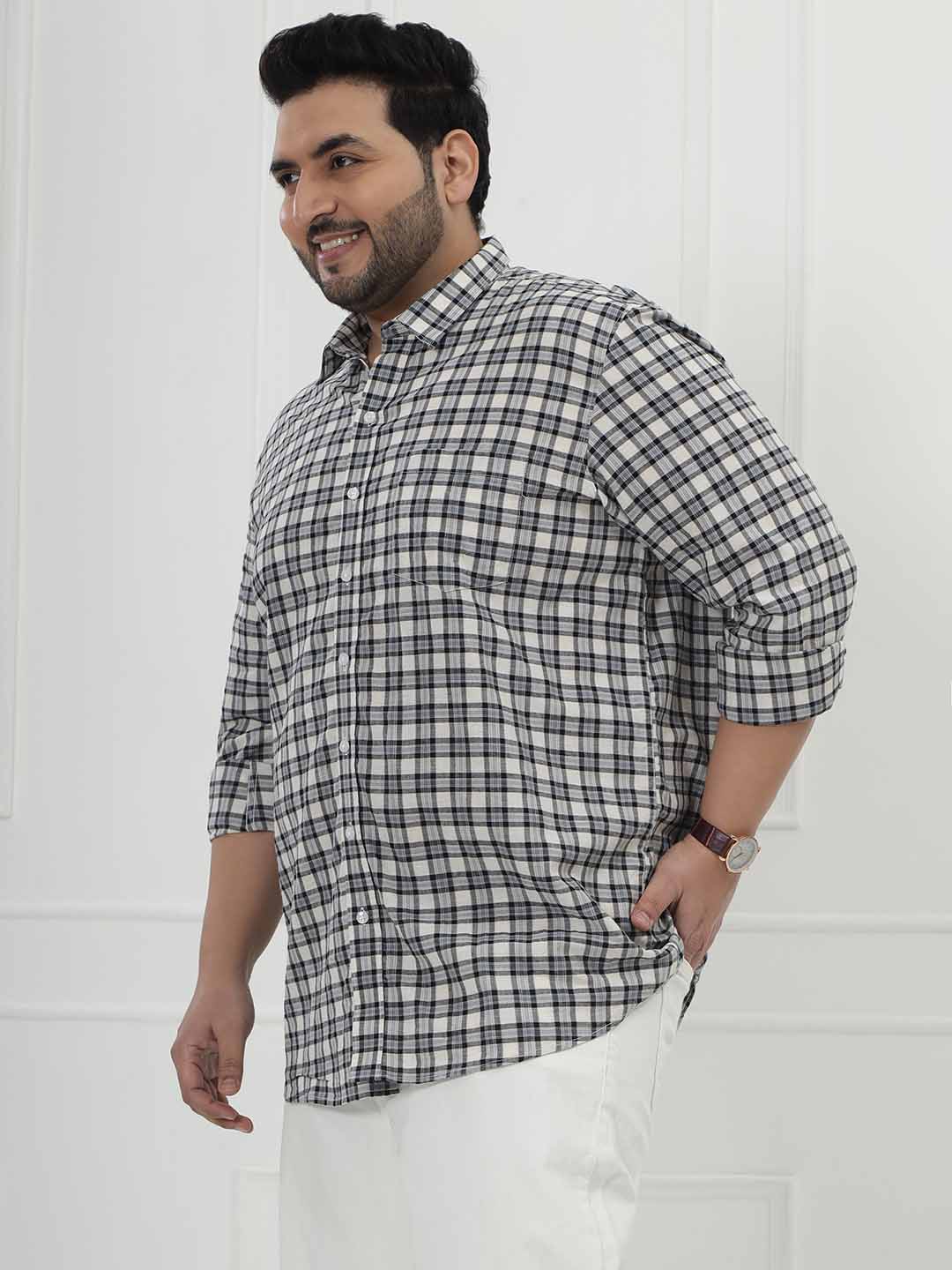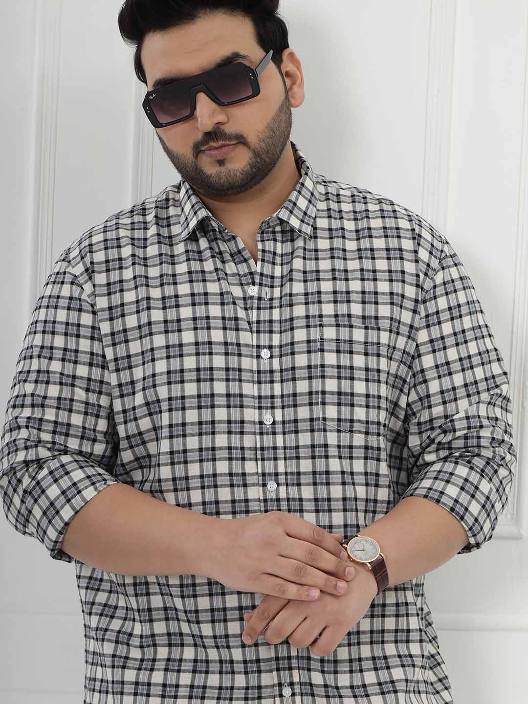 Designed with a soft cream base and elegant grey check pattern, this shirt blends comfort and class effortlessly. The pure cotton fabric keeps it lightweight and comfortable for all-day wear.