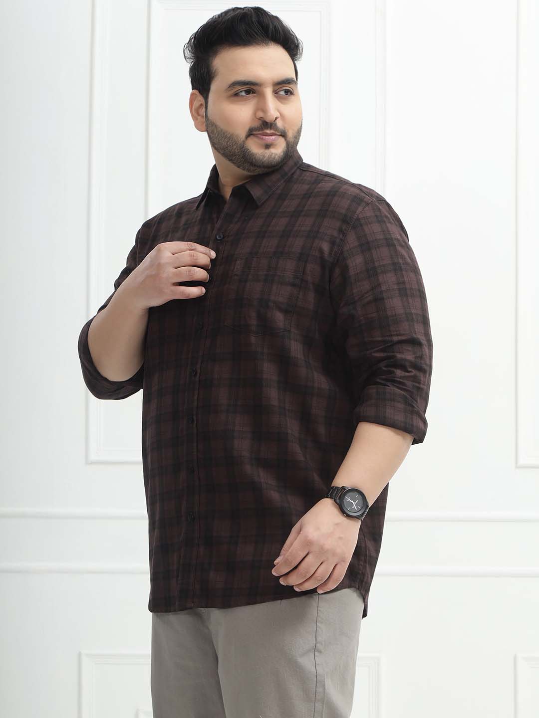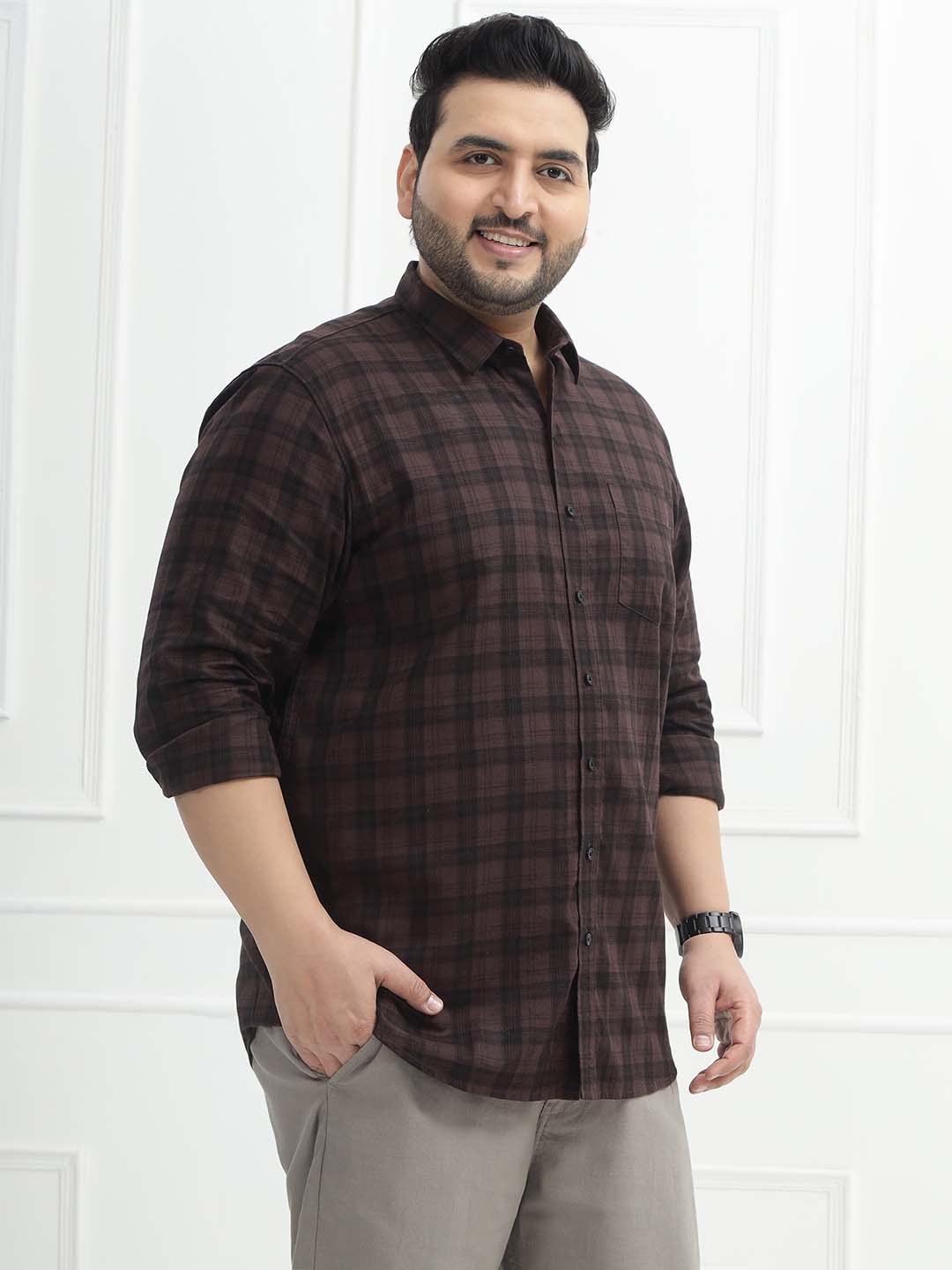 Crafted in a deep wine shade with a timeless check pattern, this 100% cotton shirt offers breathable comfort and classic style. Perfect for office wear, dinners, or smart-casual occasions.