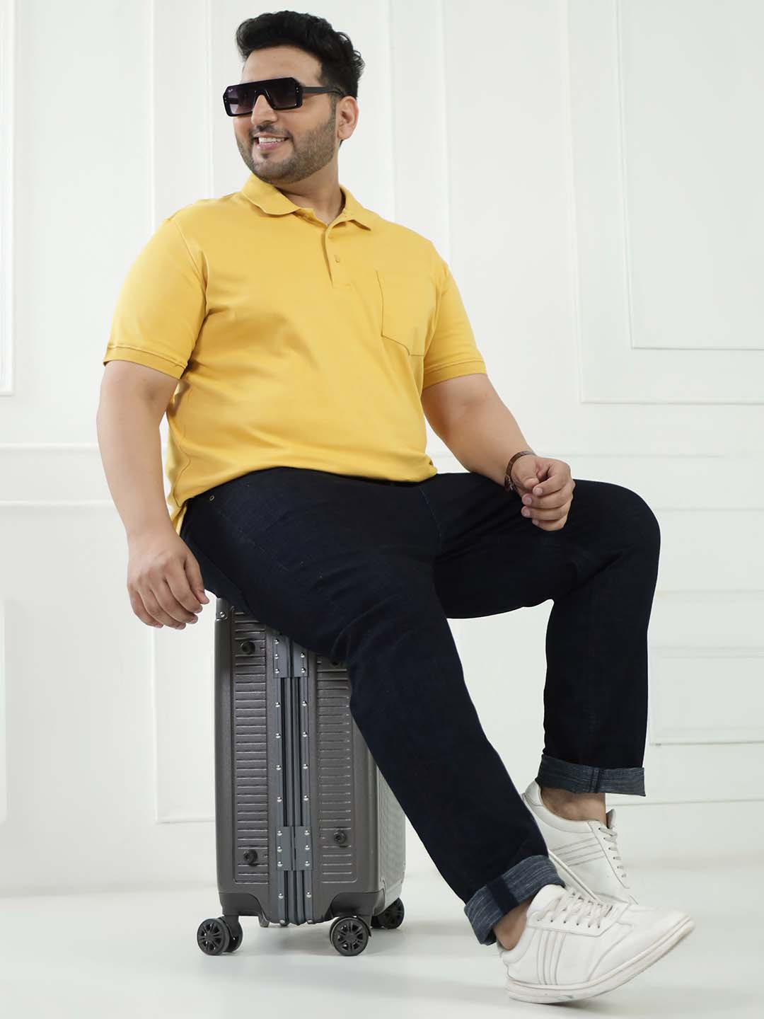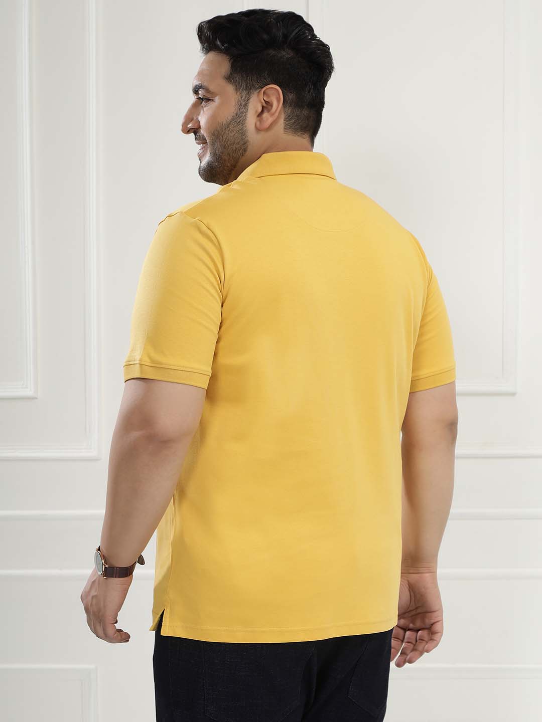 Crafted from a premium blend of 97% cotton and 3% elastane, this yellow t-shirt delivers a soft feel with superior stretch for all-day comfort. The clean solid design and flexible fit create a sharp, modern look—perfect for elevating everyday style.