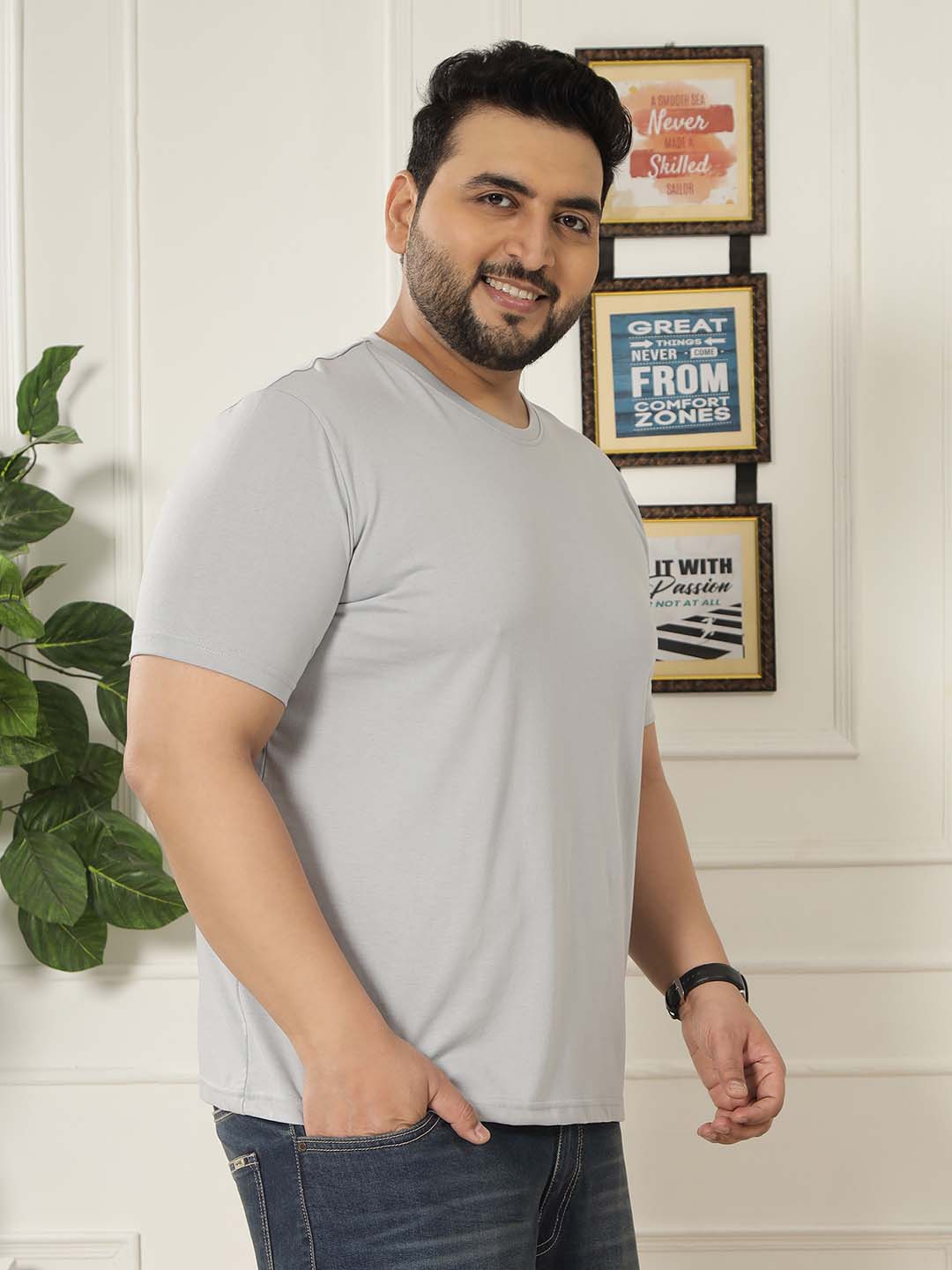 The Ash Core Tee offers a clean, minimal look designed for everyday comfort. Crafted from a durable blend of 80% Cotton and 20% Polyester, it provides a soft feel with excellent shape retention. Featuring a solid pattern with a classic round neck, this versatile T-shirt pairs effortlessly with jeans, joggers, or shorts for an easy casual style.