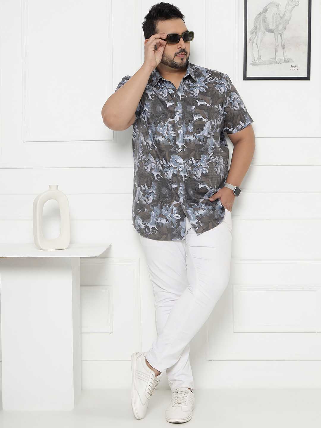 Step into bold style with this multi-hued printed half-sleeve shirt. Made from a soft blend of 99% cotton and 1% elastane, it offers both comfort and stretch for effortless movement. The abstract tropical pattern adds a trendy, city-chic vibe perfect for casual outings or weekend getaways.