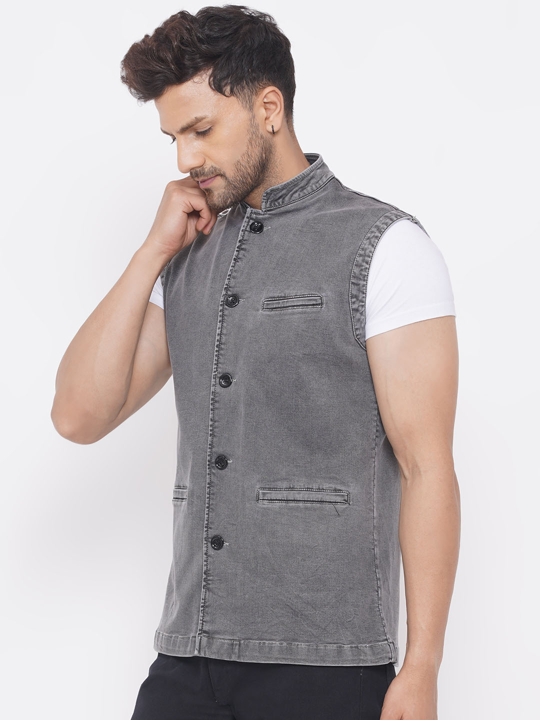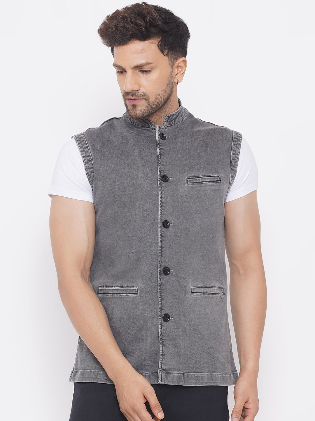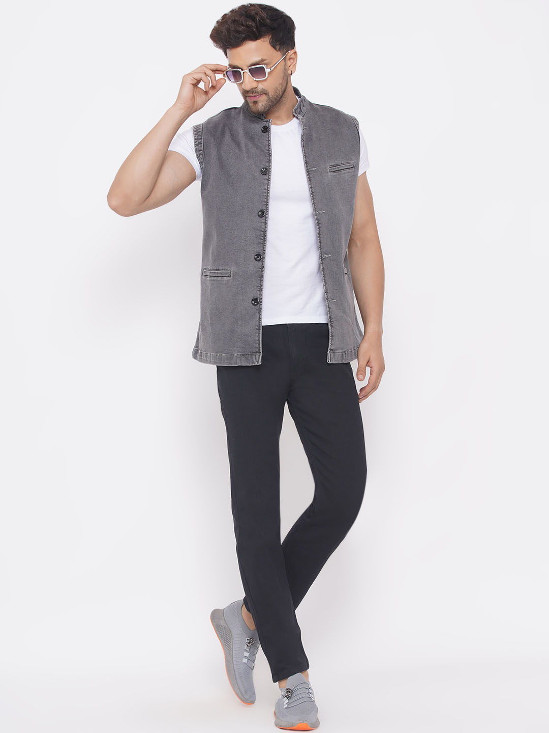 We are here to take your looks up a notch in a heartbeat. It just has to be in your closet! As a real fashion expert, you can't avoid the iconic denim Nehru Jacket. Its slightly washed-out retro look gives it an authentic look with which you can give your casual outfits a large portion of nonchalance. You don't need more than a trendy print shirt, slim jeans, and cool sneakers to make a super casual impression in this denim jacket!. Proof that the key to your heart is through your wardrobe.