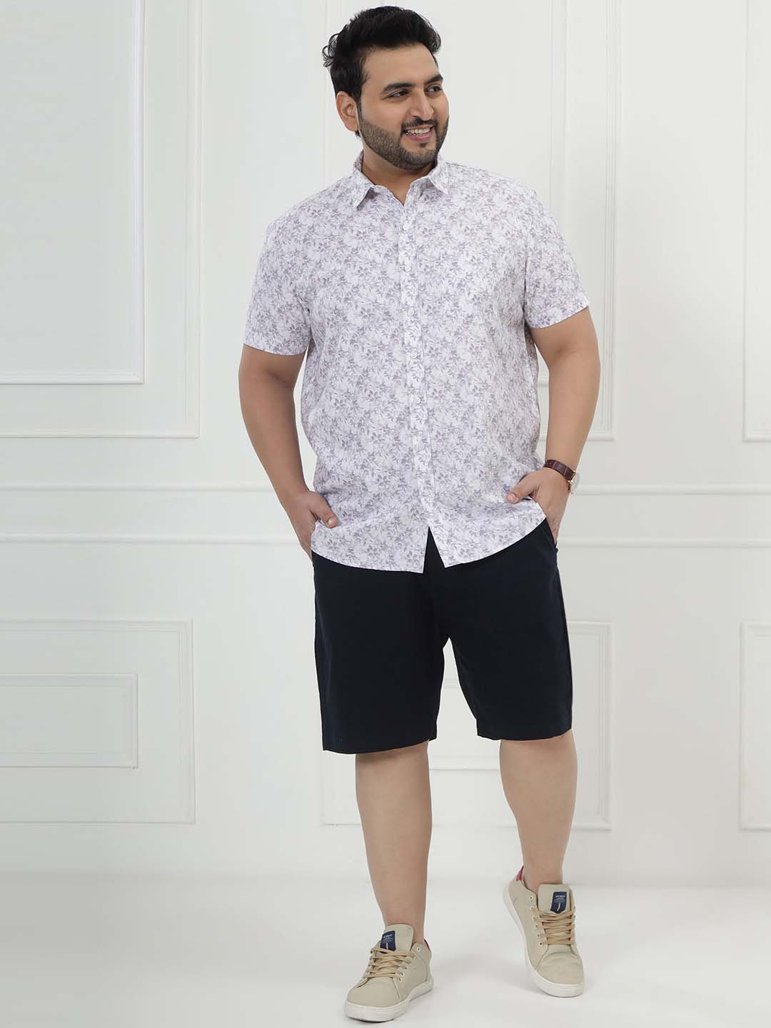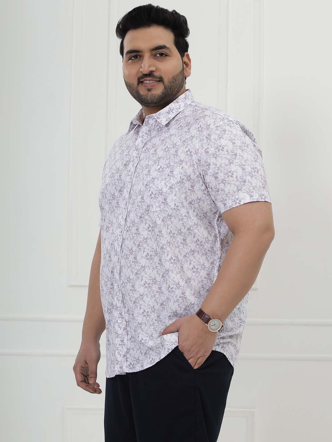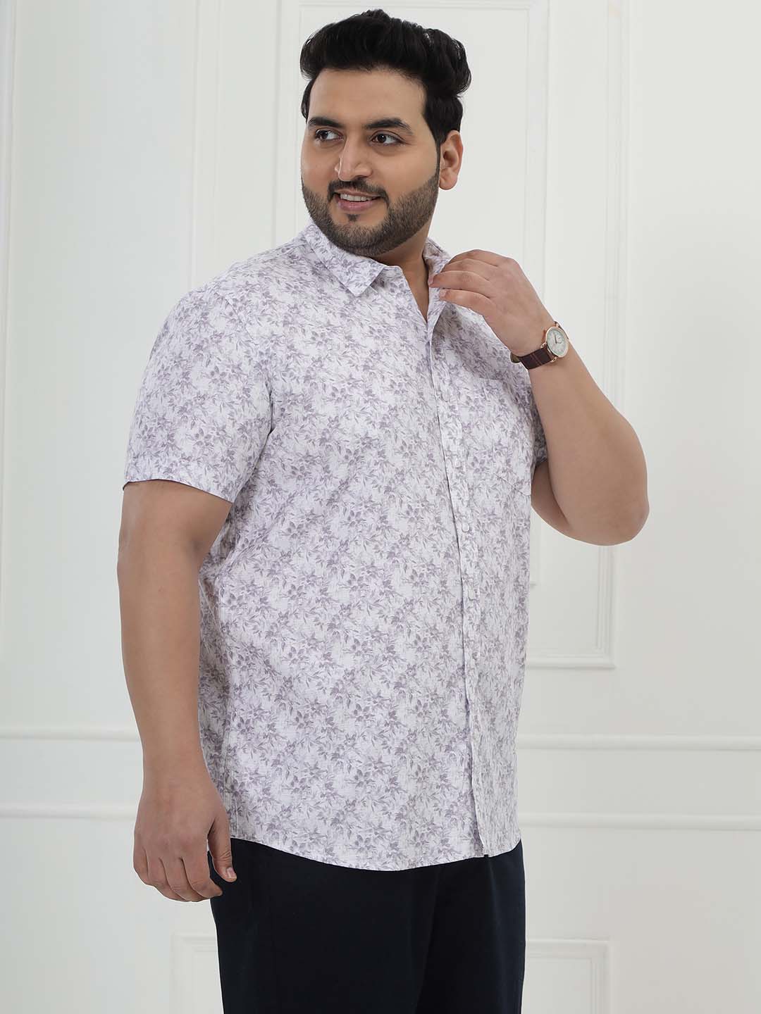 The Lavender Bloom Shirt features a fresh white base adorned with soft purple floral prints for a light, stylish, and refreshing look. Crafted from 100% breathable cotton and tailored in a comfortable half-sleeve design, it keeps you cool while adding a touch of charm to your outfit. Perfect for casual outings, vacations, or relaxed daywear, this shirt blends comfort with effortless floral elegance.