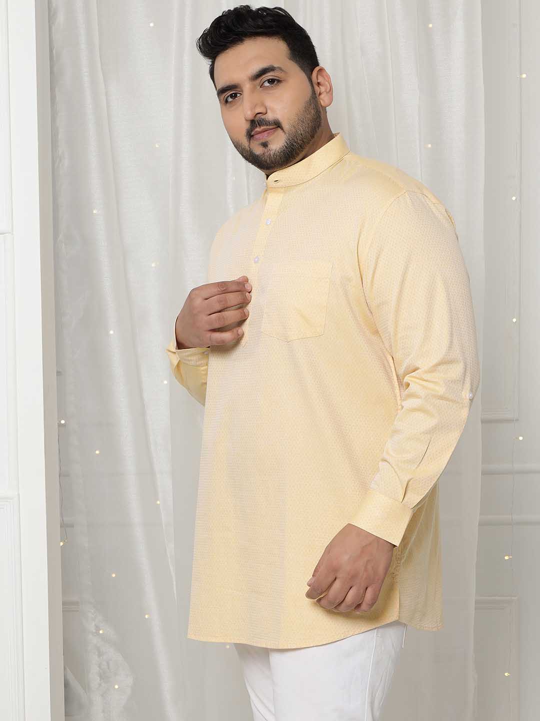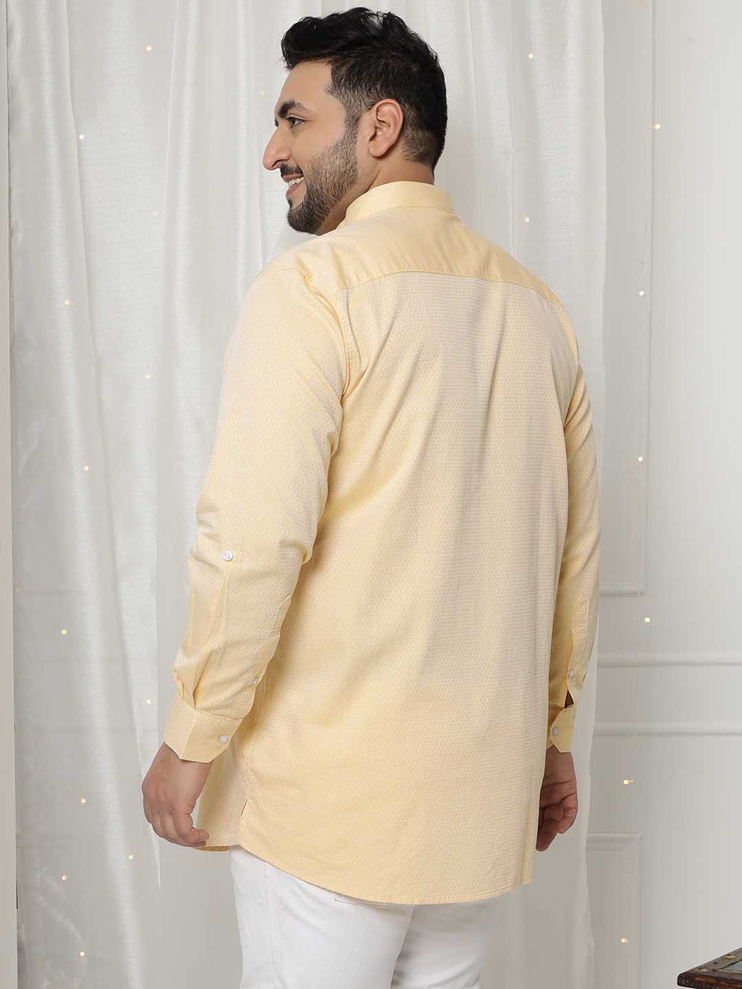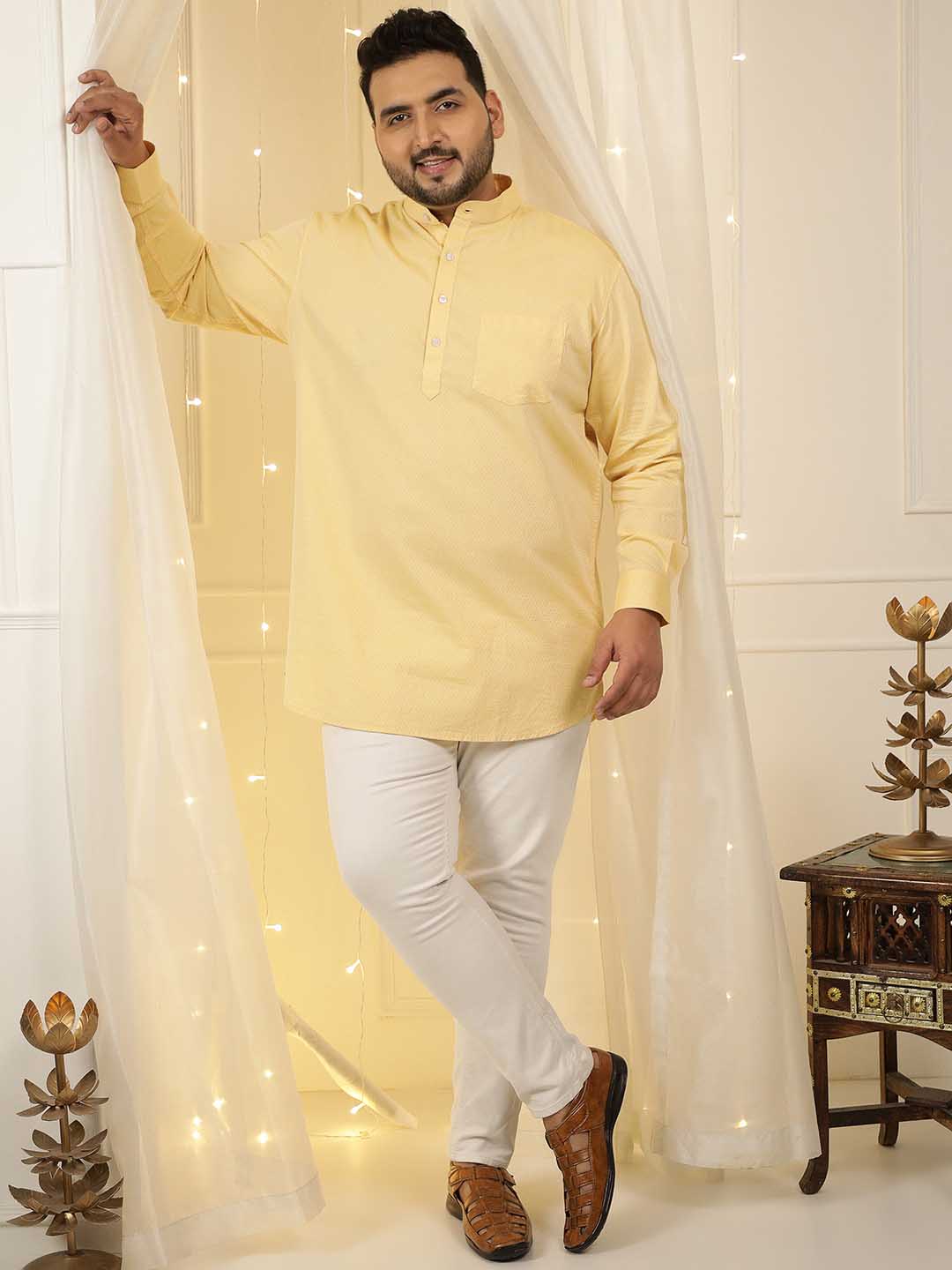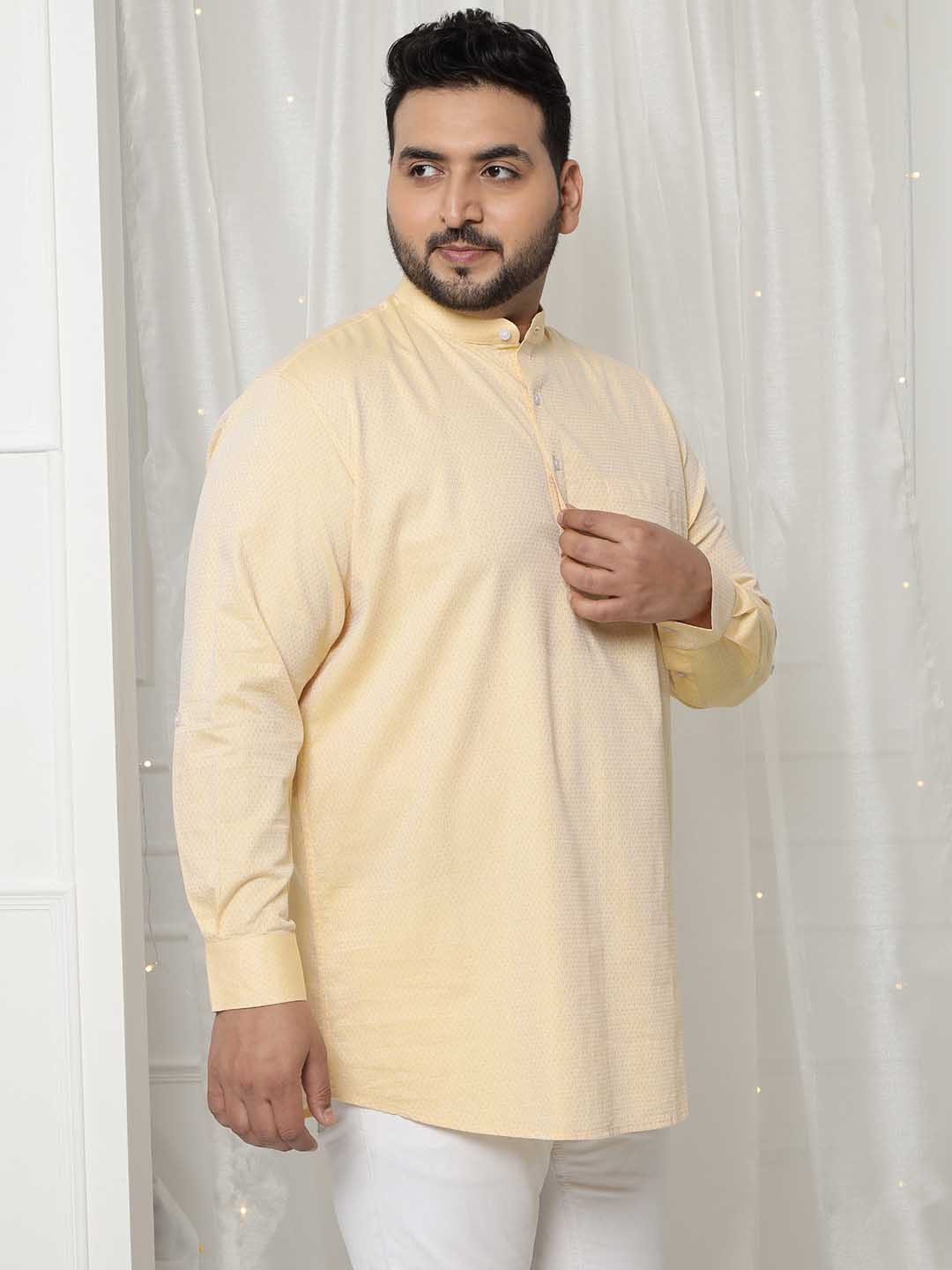 Add freshness and charm to your look with this Light Yellow Geometrical Kurta Shirt crafted from 100% pure cotton. The subtle geometric pattern brings a refined touch, perfect for festive gatherings or casual days. Designed for easy comfort and effortless style — a perfect blend of traditional elegance and modern simplicity.