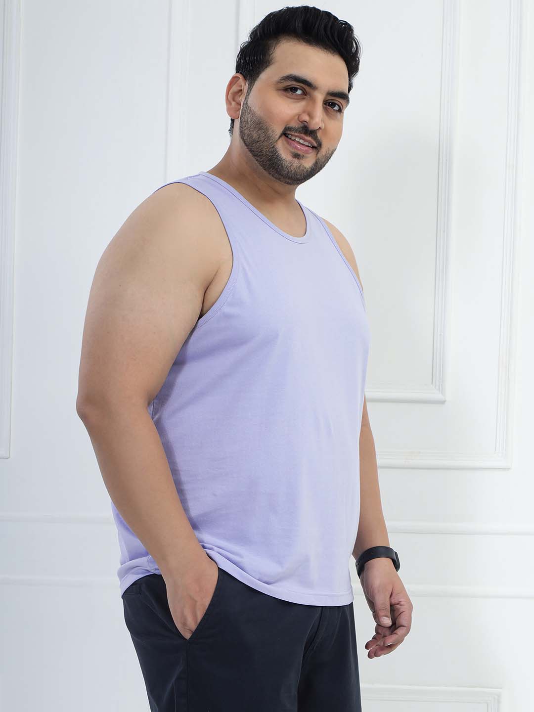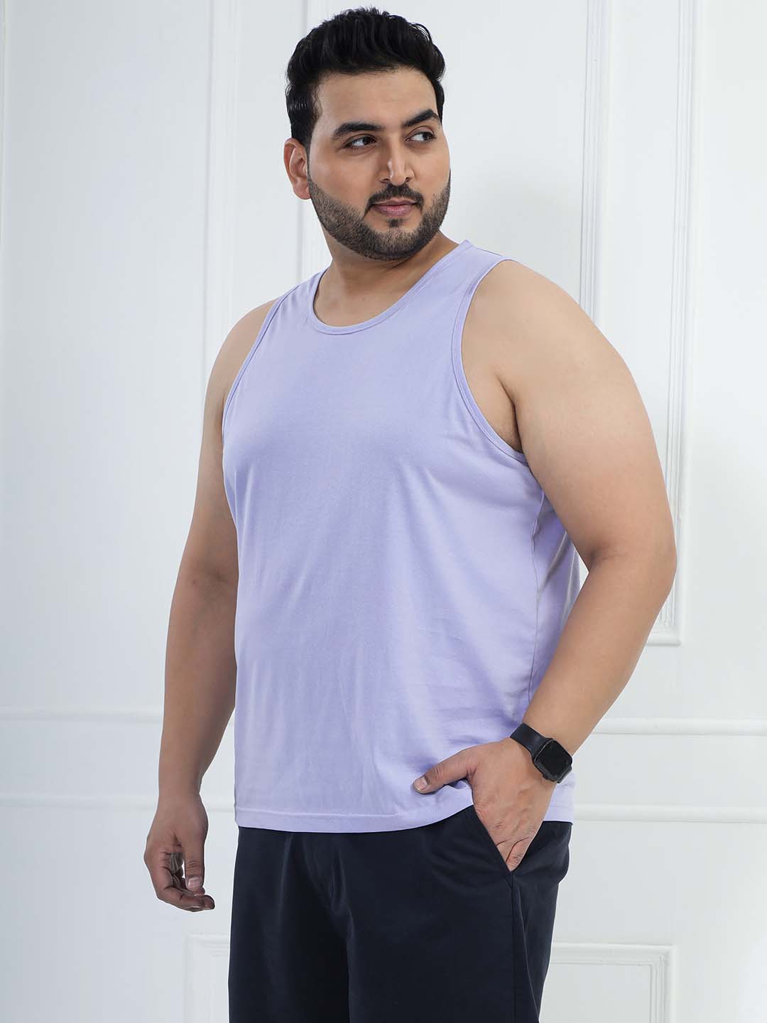 Stay fresh and stylish in this Men’s Lavender Solid Tank T-Shirt. Made from a soft cotton-poly blend (80% cotton, 20% polyester), it offers breathable comfort with long-lasting durability. Perfect for gym workouts, summer wear, layering, and everyday casual looks.