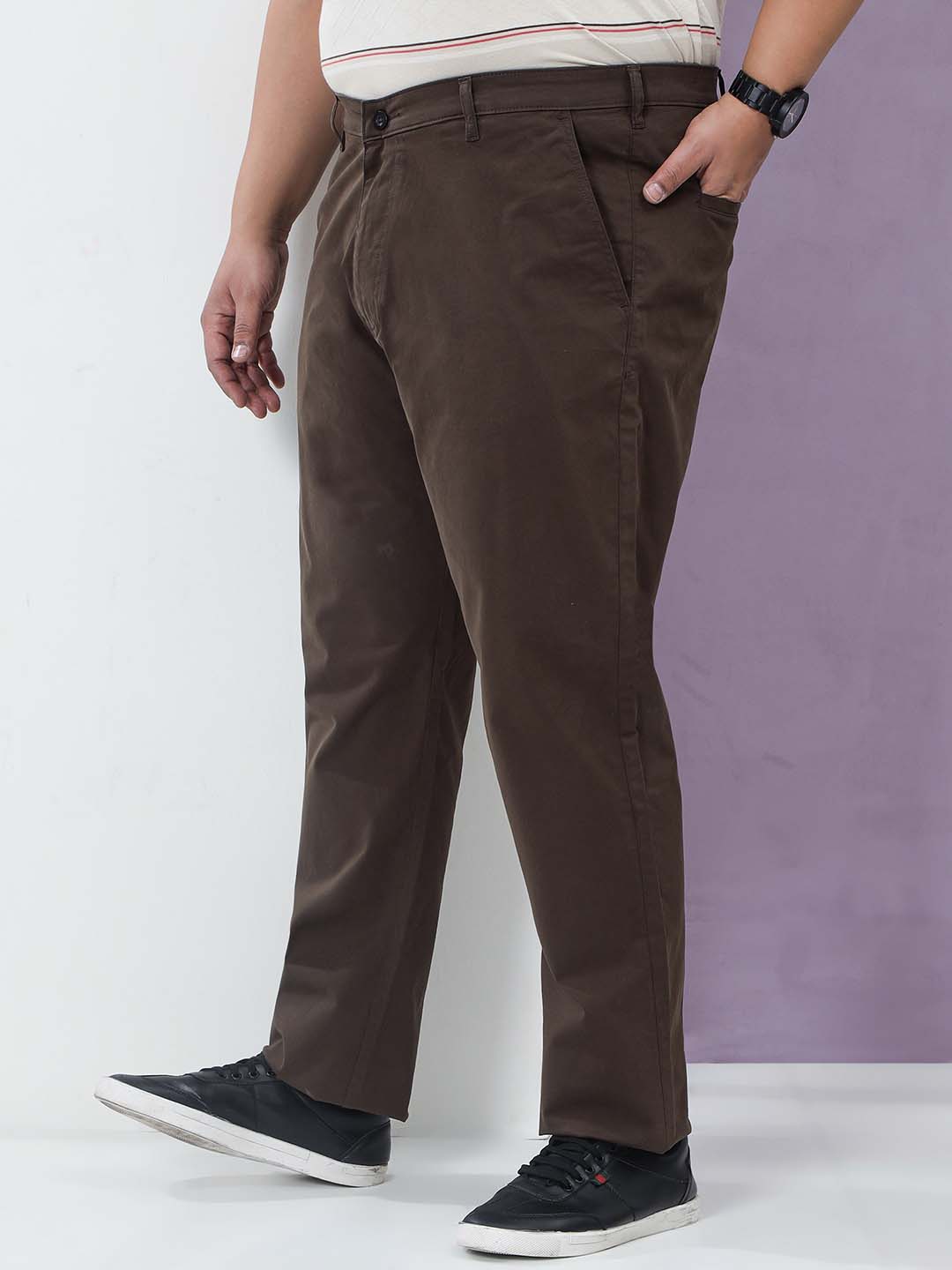 These mocha-brown cotton pants bring a rich, earthy tone for a clean everyday look.