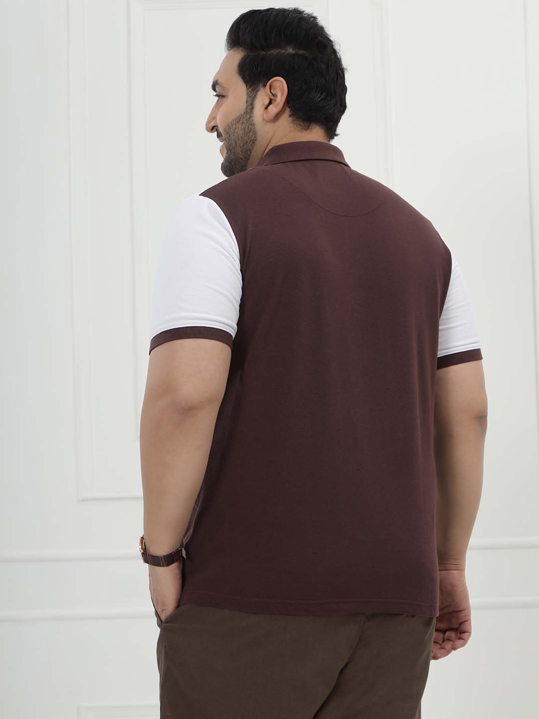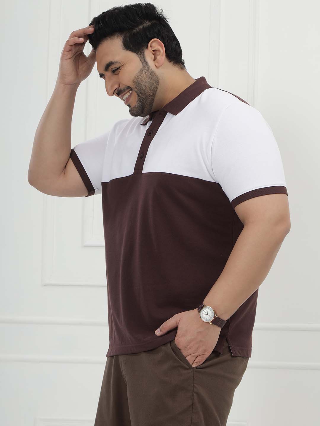 The Mocha Crest Polo features a clean colorblock design combining crisp white with rich brown for a smart and modern look. Made from a comfortable blend of 80% cotton and 20% polyester, it offers breathability along with durability and shape retention. Perfect for casual outings, weekend wear, or smart-casual styling, this polo delivers a polished appearance with everyday comfort.