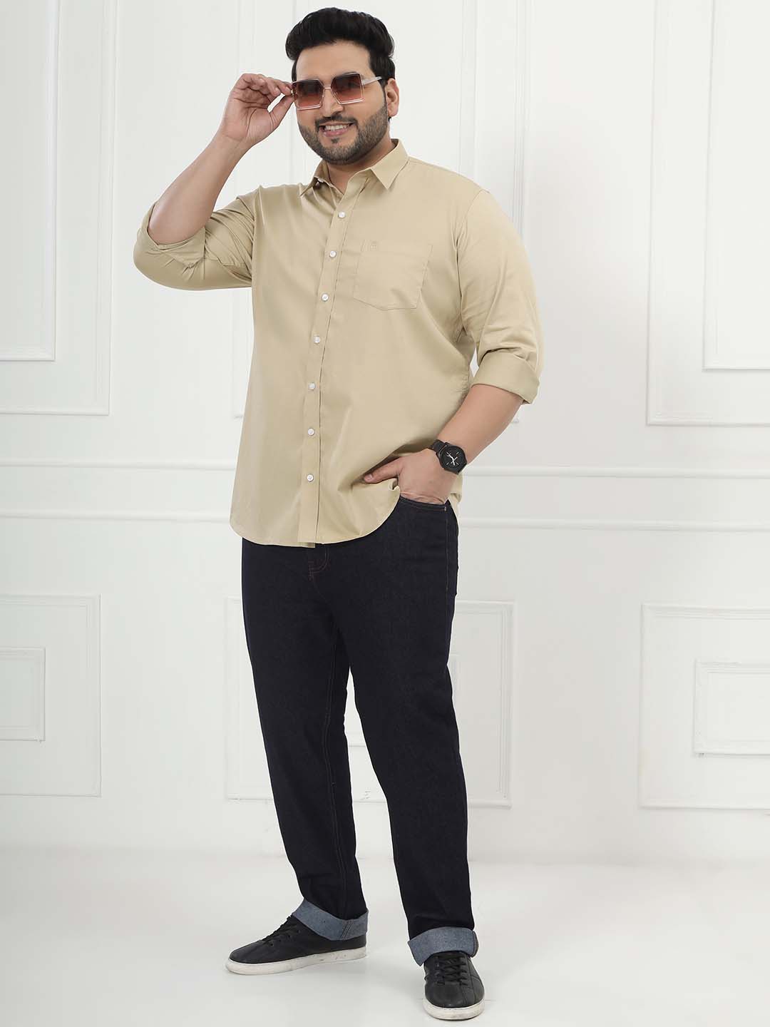 This beige shirt blends timeless style with modern comfort. Made from 99% breathable cotton and 1% elastane, it offers a soft feel with a slight stretch for ease of movement. A perfect choice for office wear and refined casual looks.