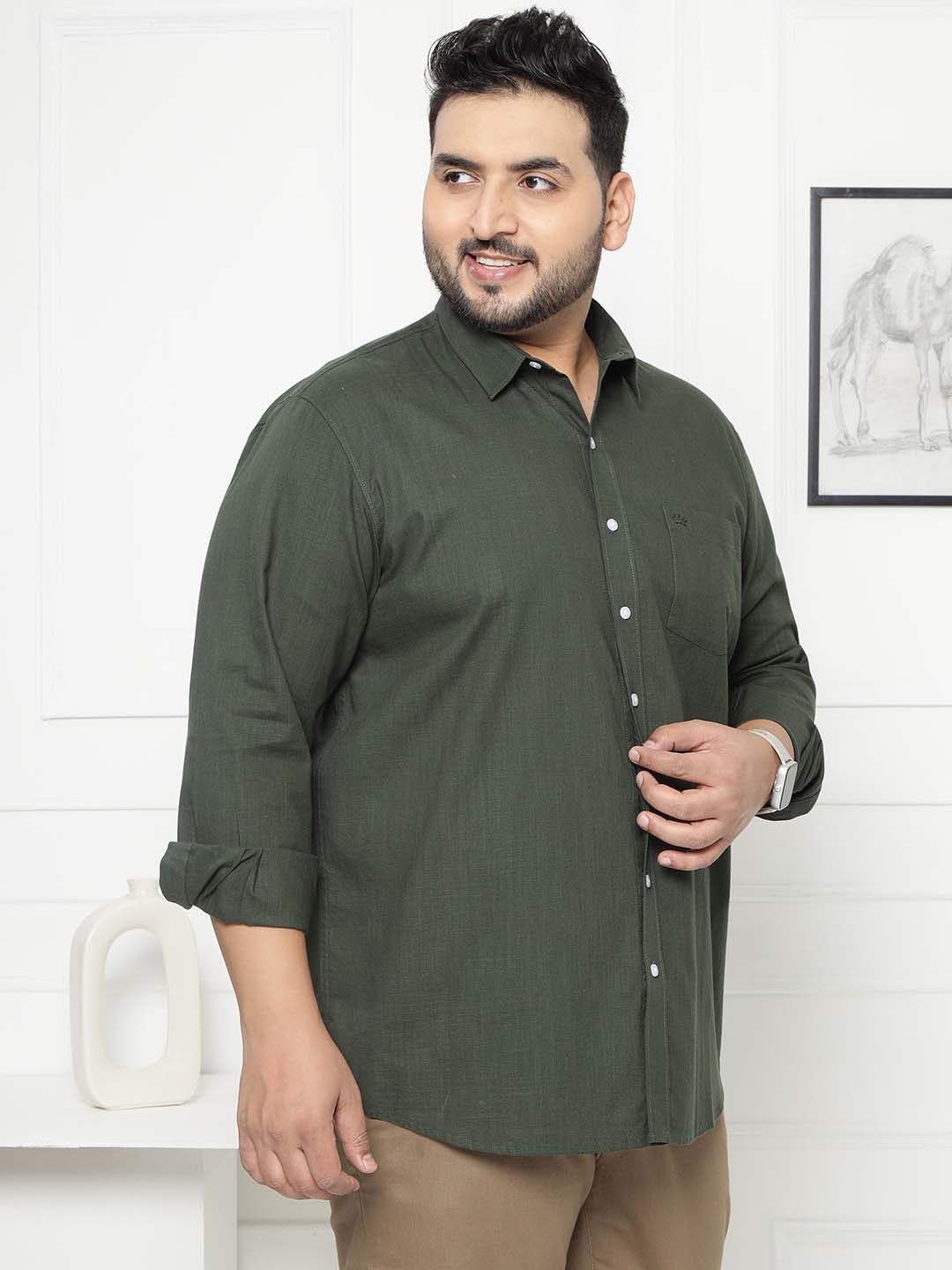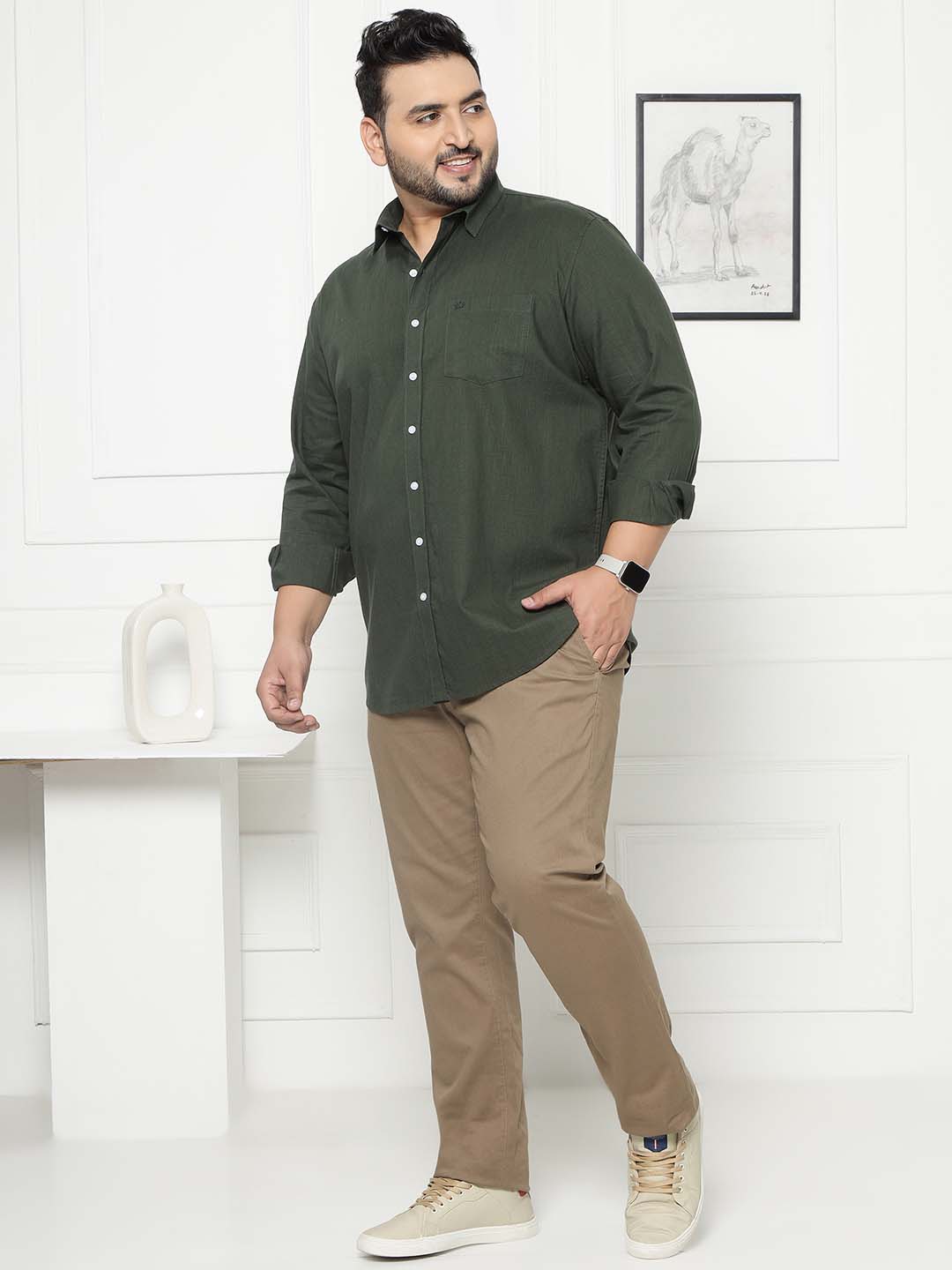 Redefine effortless style with this Olive Solid Shirt, crafted from 100% pure cotton for superior comfort and breathability.