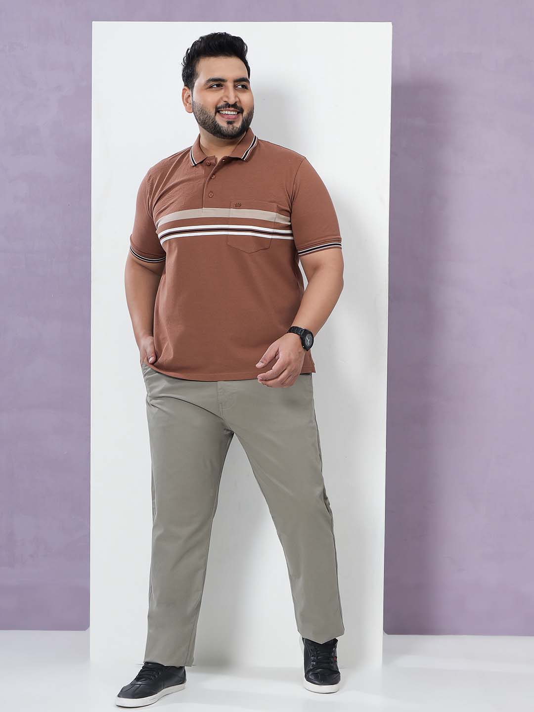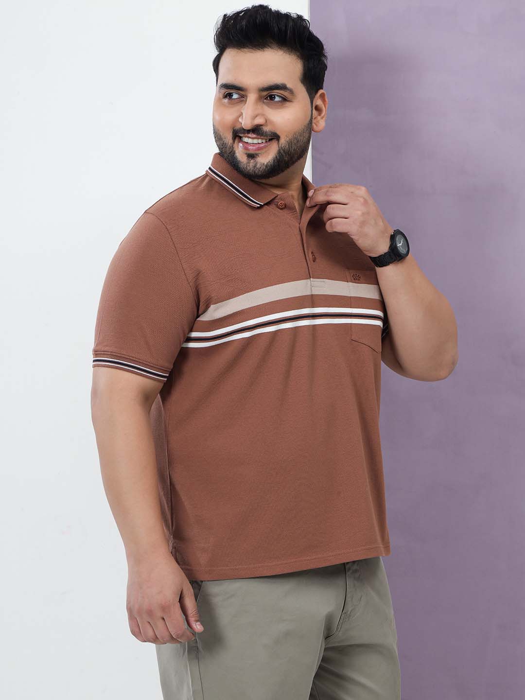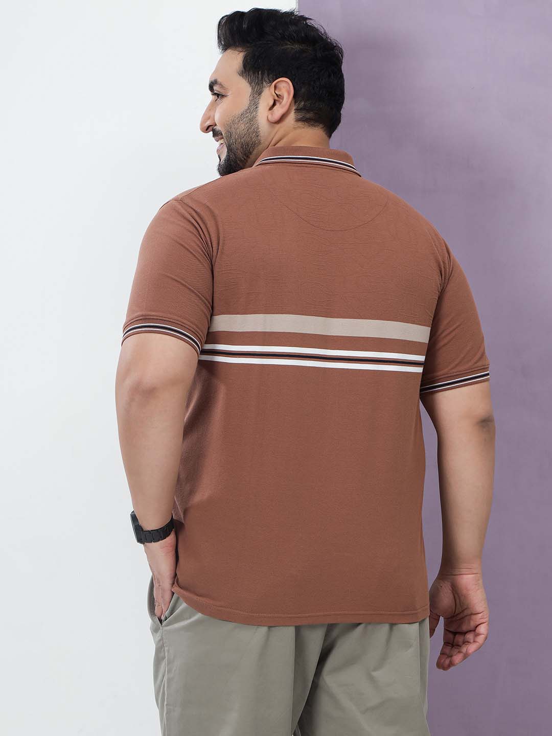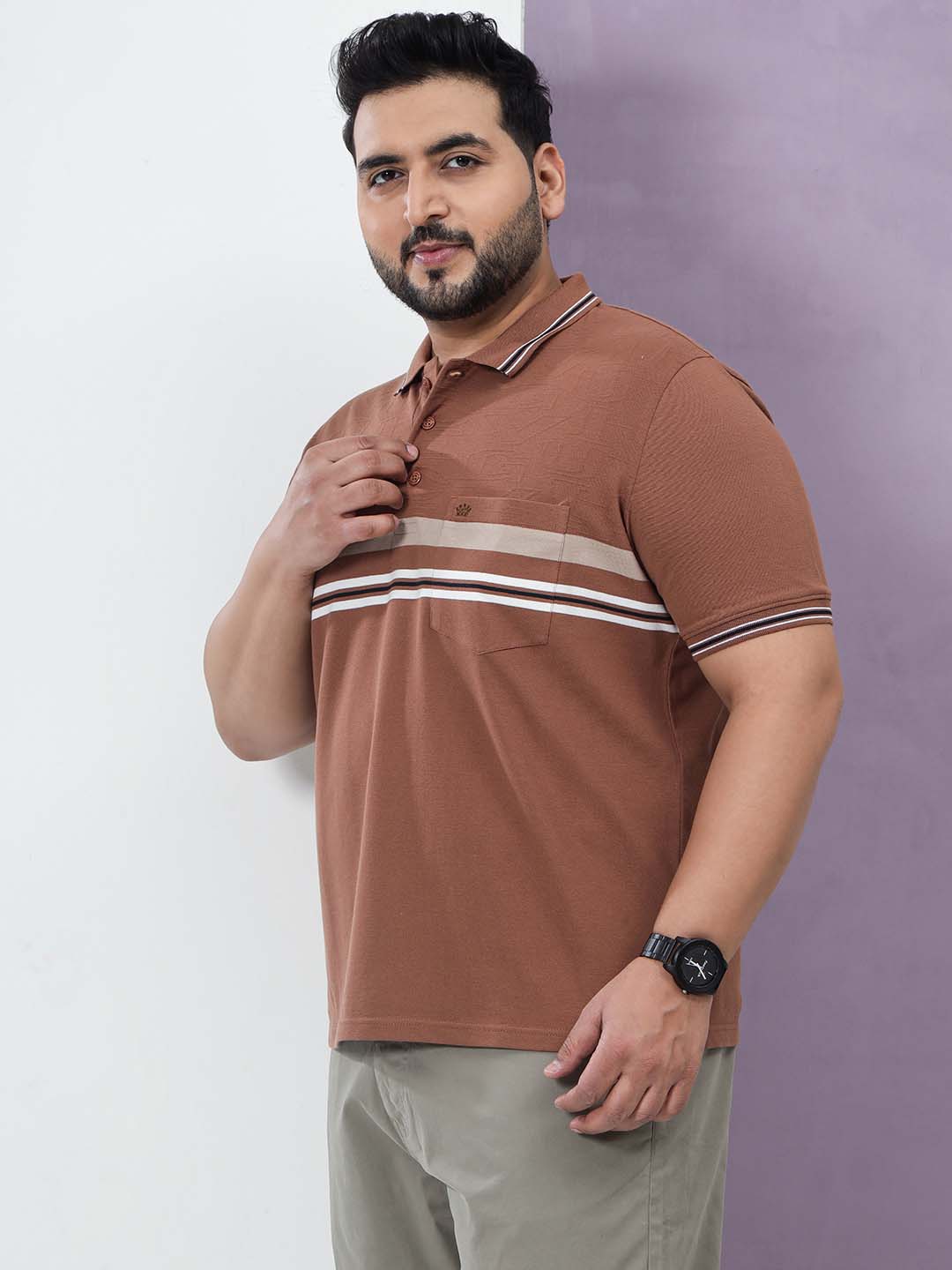 Crafted in a warm rust tone, this piece features clean chest stripes that add a modern and structured look. The soft jacquard texture gives it a refined feel while maintaining everyday comfort. Made with a premium blend of 97% cotton and 3% elastane, it offers breathable wear with gentle stretch. Easy to pair and effortlessly stylish, it’s designed for those who want comfort without compromising on style.
