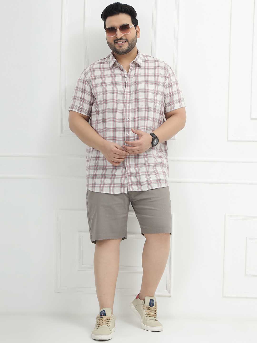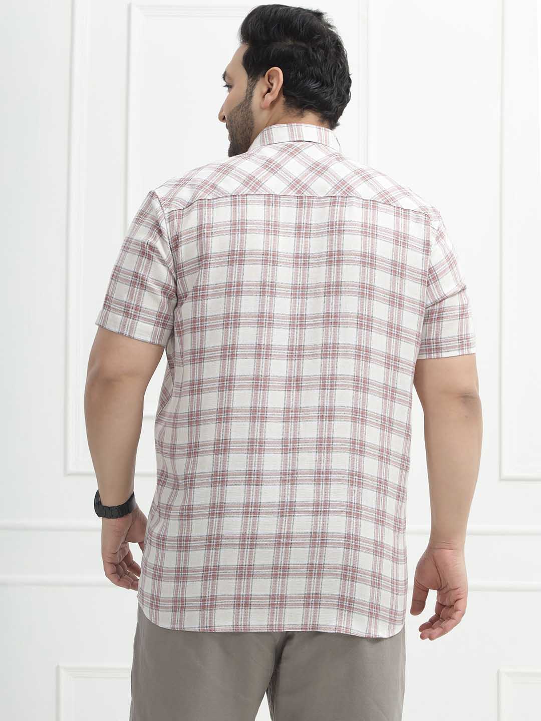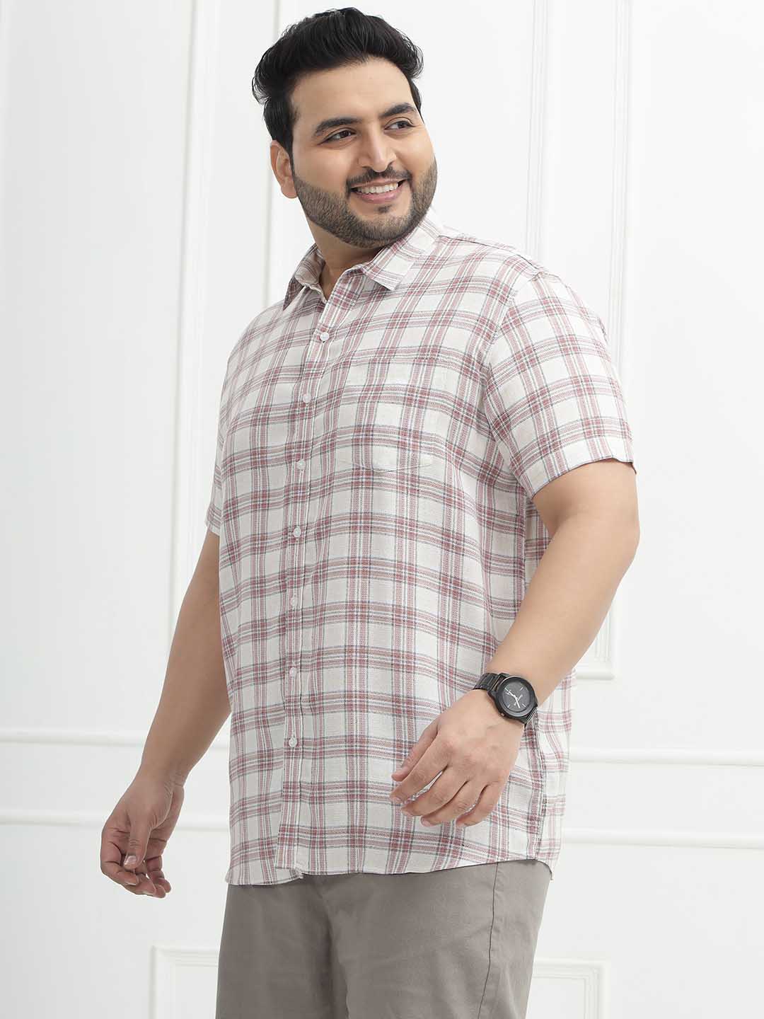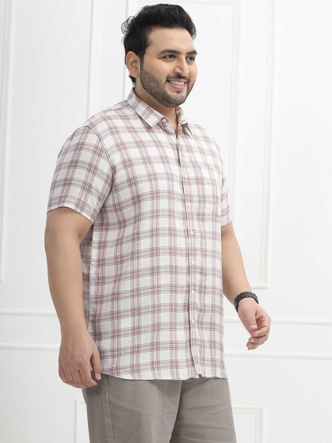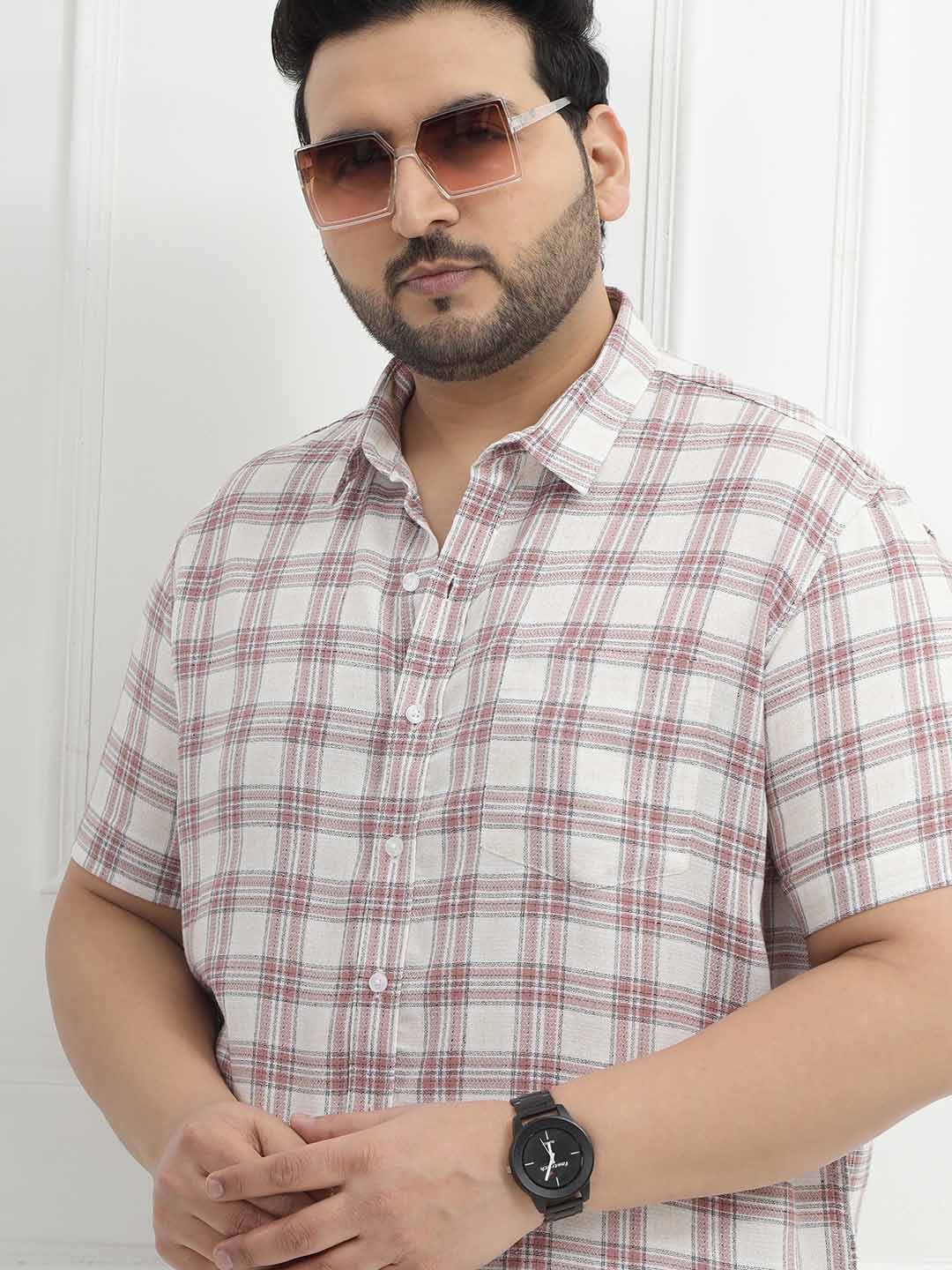 The Rustline Check Shirt features a soft cream base highlighted with bold red check patterns, giving it a sharp yet easygoing appeal. Made from 100% breathable cotton and styled in a comfortable half-sleeve design, it keeps you cool while adding a smart casual edge to your look. Perfect for everyday wear, outings, or relaxed workdays, this shirt combines classic checks with all-day comfort.