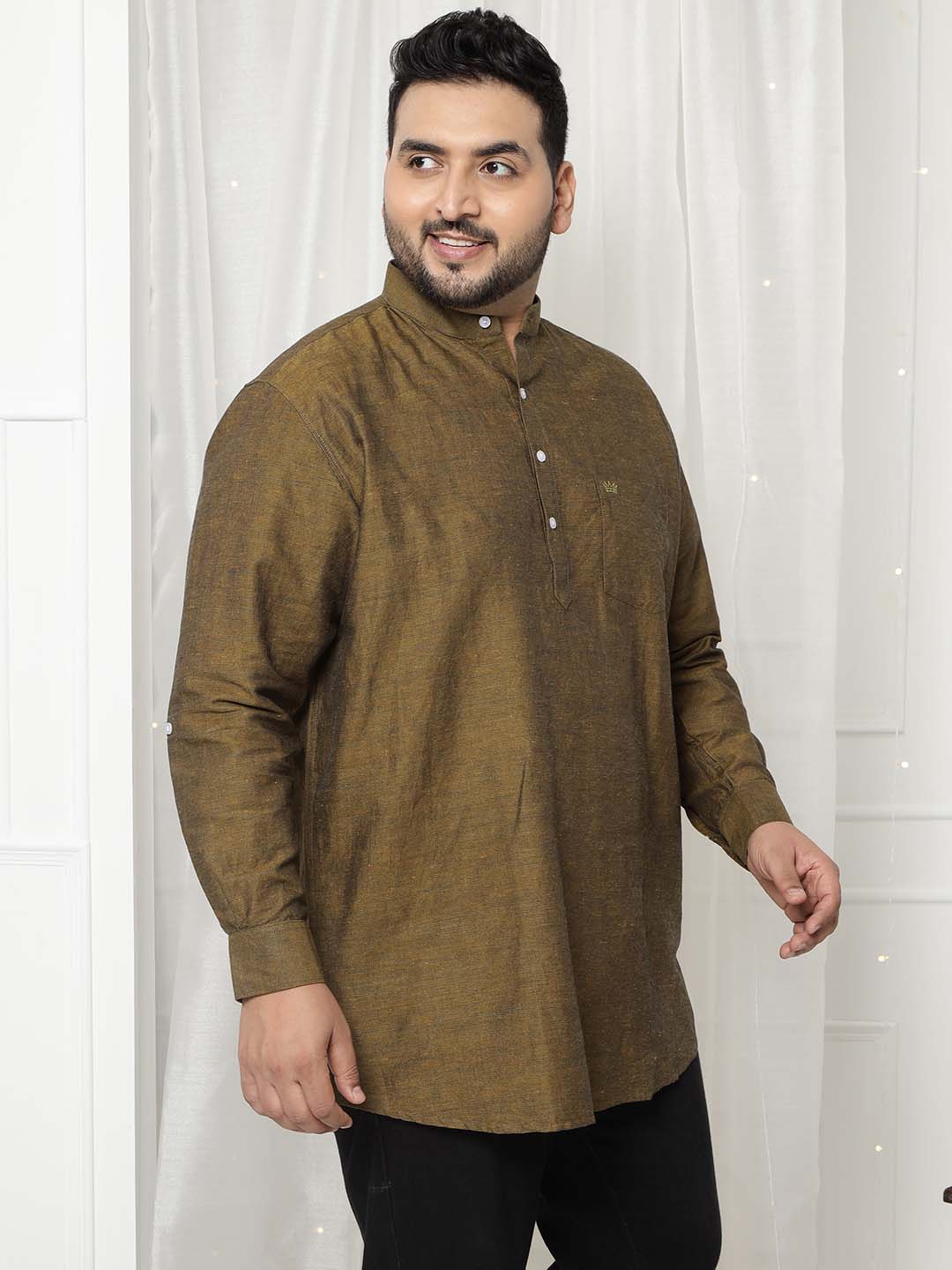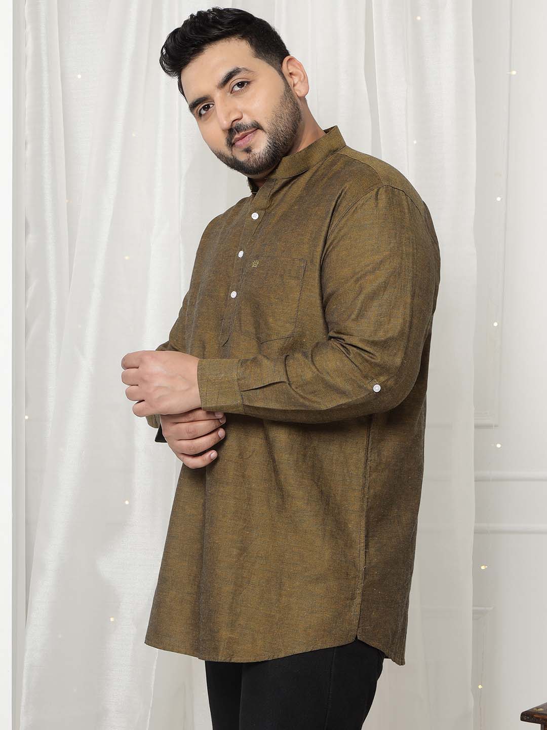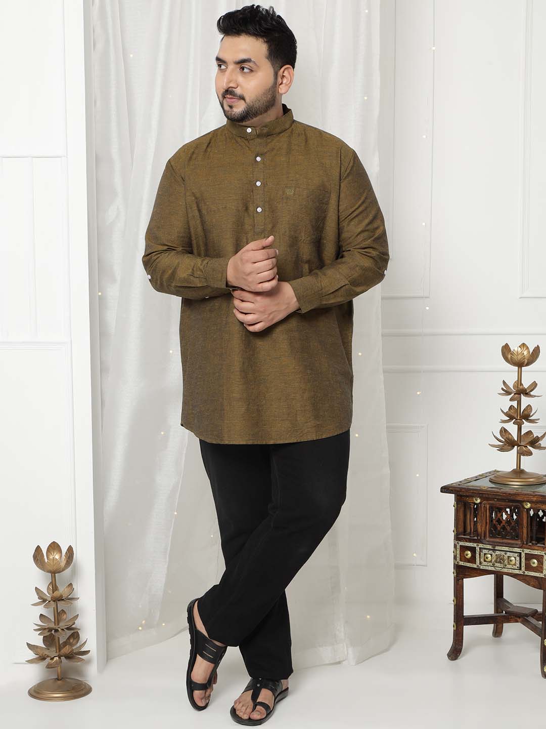 Add a refined touch to your ethnic-casual wardrobe with the Saffron Edge Cotton Kurta Shirt. Crafted from 100% pure cotton, this solid mustard piece offers superior comfort, breathability, and timeless appeal. Designed with a band collar and half-button placket, it combines traditional charm with modern simplicity — perfect for festive gatherings or casual evenings.