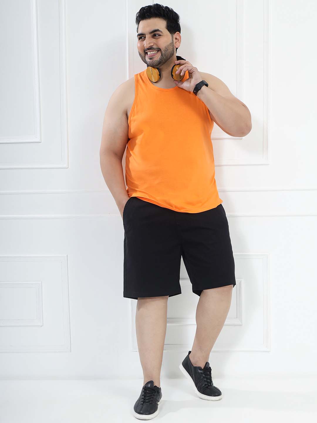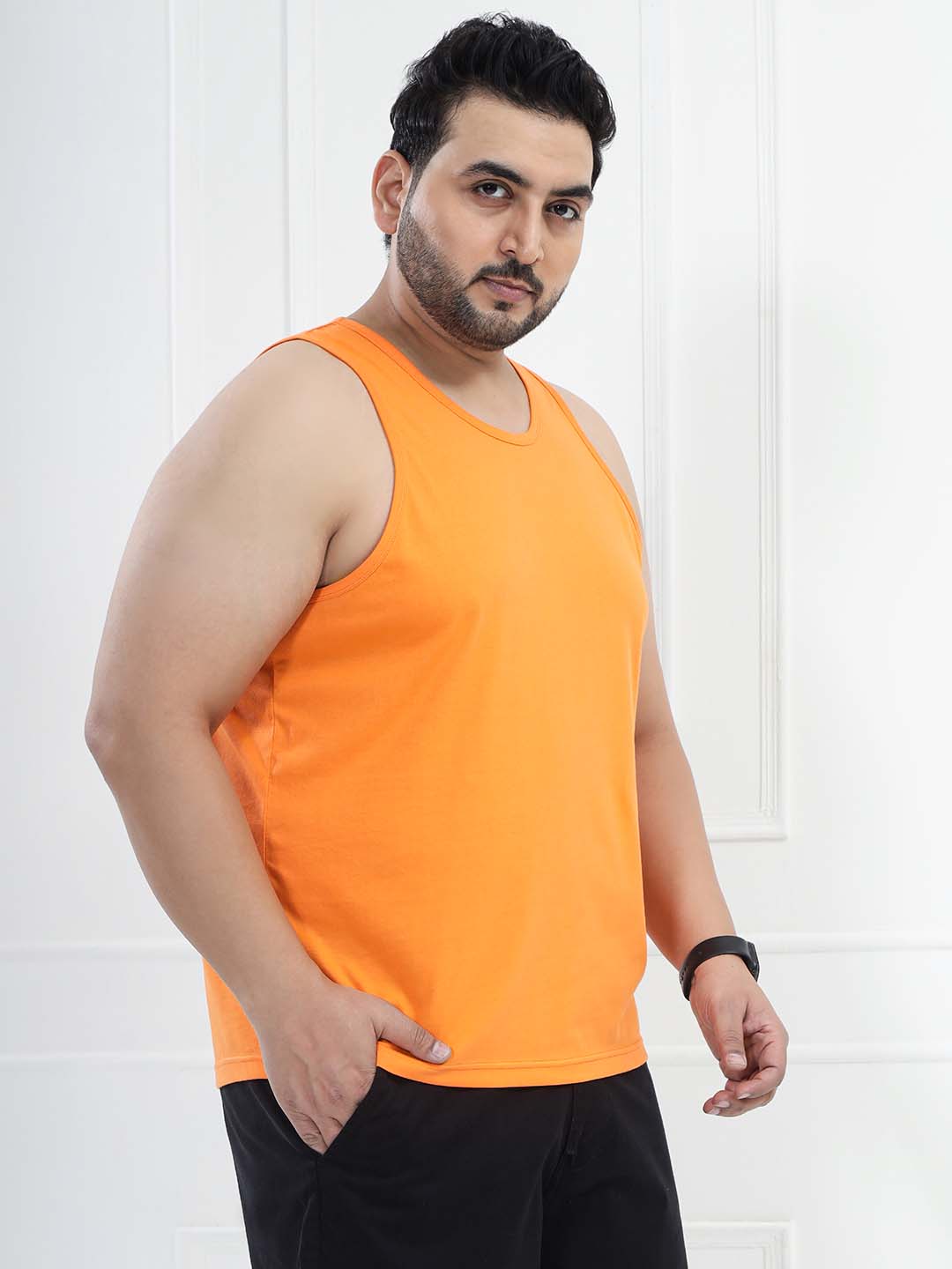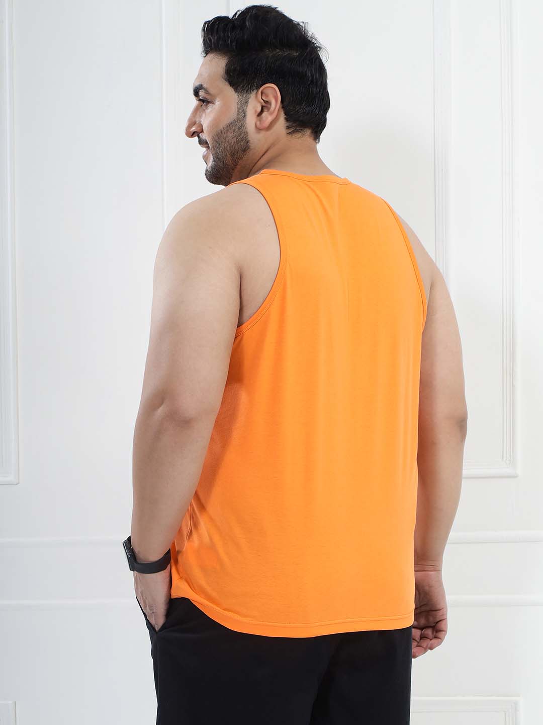 Add a bold touch to your look with this Men’s Orange Solid Tank T-Shirt. Made from a soft cotton-poly blend (80% cotton, 20% polyester), it offers breathable comfort with durability. Perfect for gym workouts, summer wear, layering, and everyday casual styling.