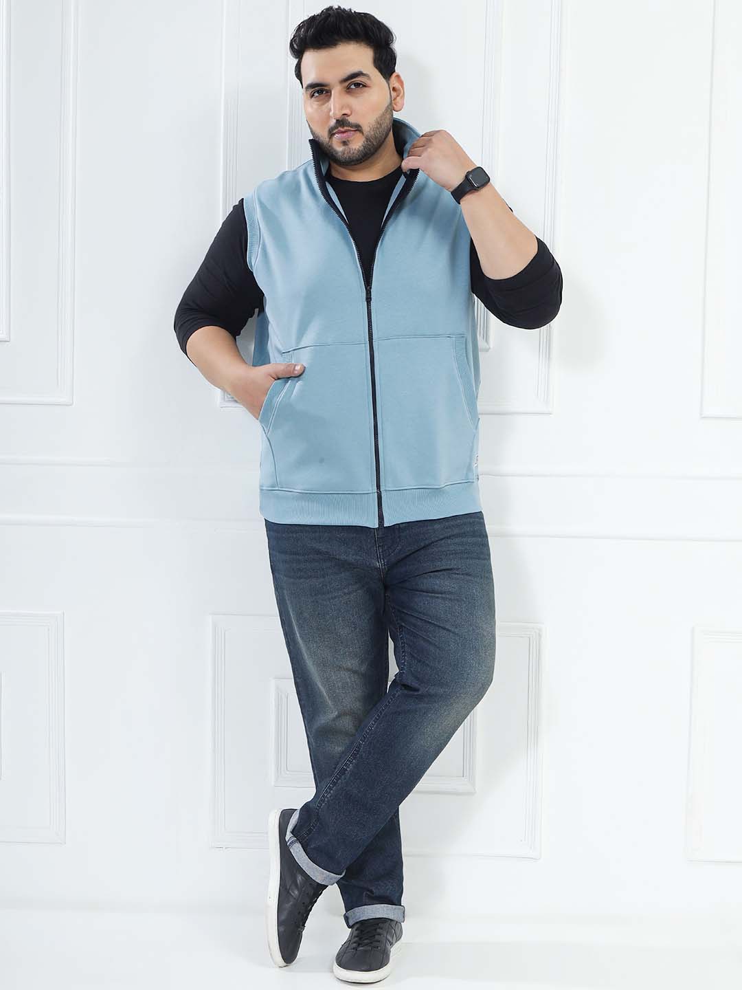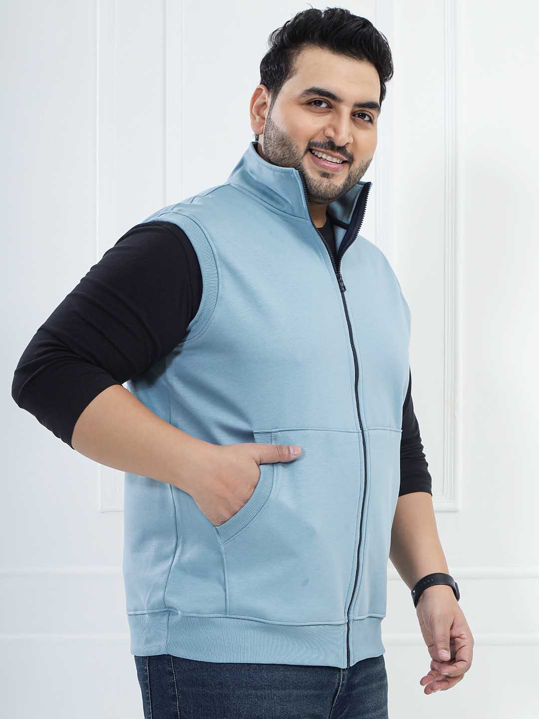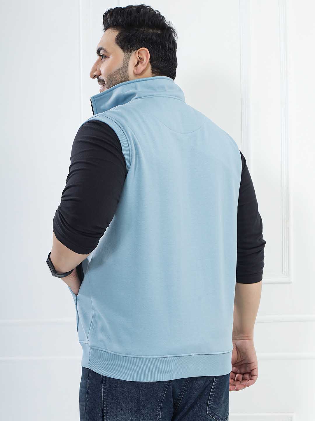 A light and easy sleeveless sweatshirt in calming Sky Blue, designed in soft fleece fabric for warmth without weight. The zip-front style makes it simple to layer over tees or full sleeves, giving you comfort through travel, outdoor strolls, or casual evenings. Relaxed, versatile, and gently warm, it adds a cool seasonal touch to your everyday wardrobe.