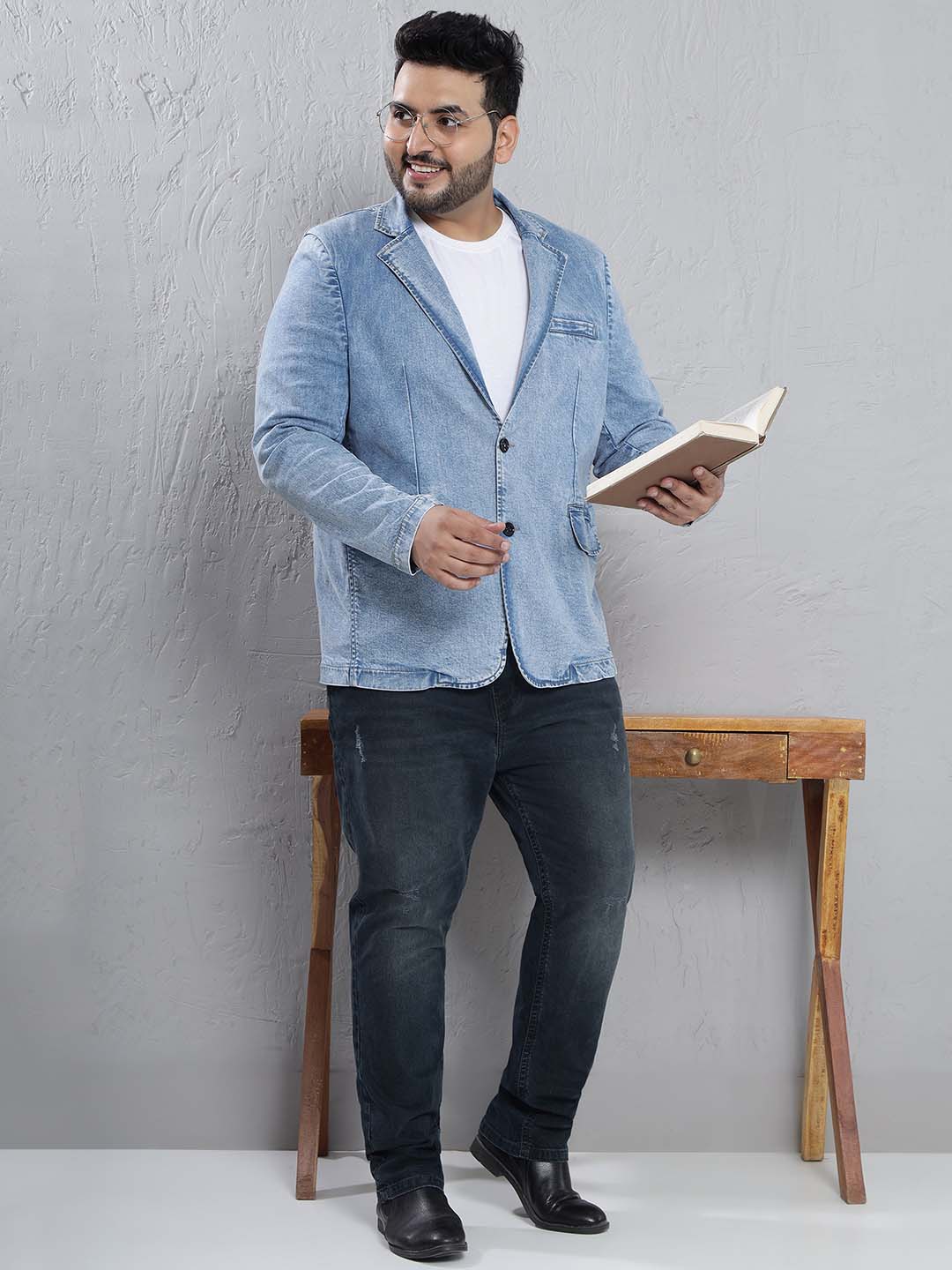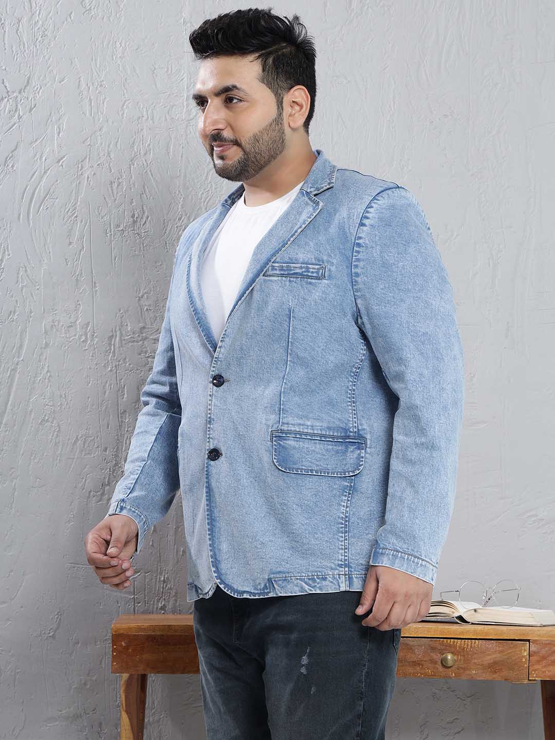 This light blue denim blazer is crafted from a premium blend of 99% cotton and 1% lycra, providing a perfect balance of softness, breathability, and a slight stretch for enhanced comfort and flexibility. Designed with a tailored fit, it offers a modern, polished look suitable for both casual and semi-formal occasions. The breathable cotton fabric ensures all-day comfort, while the lycra adds durability and shape retention, making this blazer a versatile and stylish addition to any wardrobe.