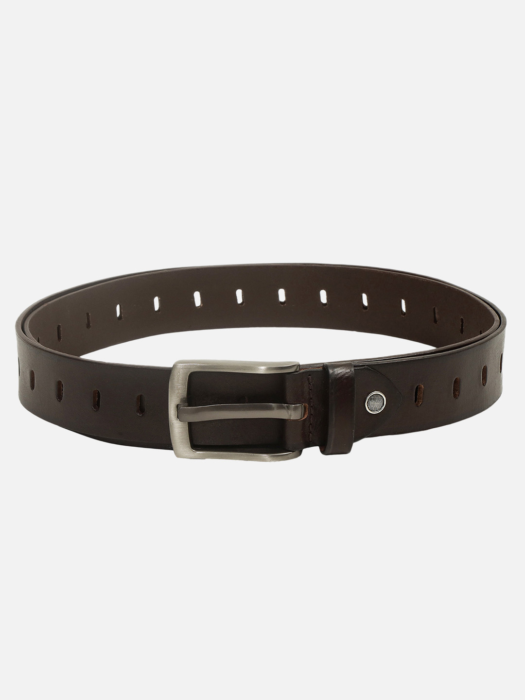 Add a bold touch to your look with this Studded Brown Leather Belt. Crafted with a rich brown finish and stylish stud detailing, it comes with a strong metal buckle for a secure fit. Perfect to pair with jeans and casual outfits for a rugged streetwear vibe.