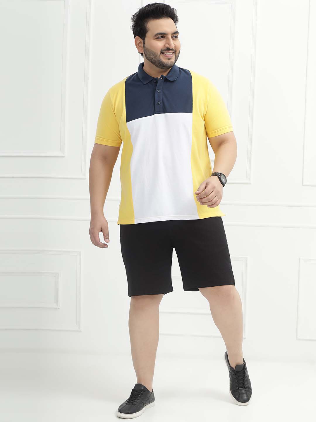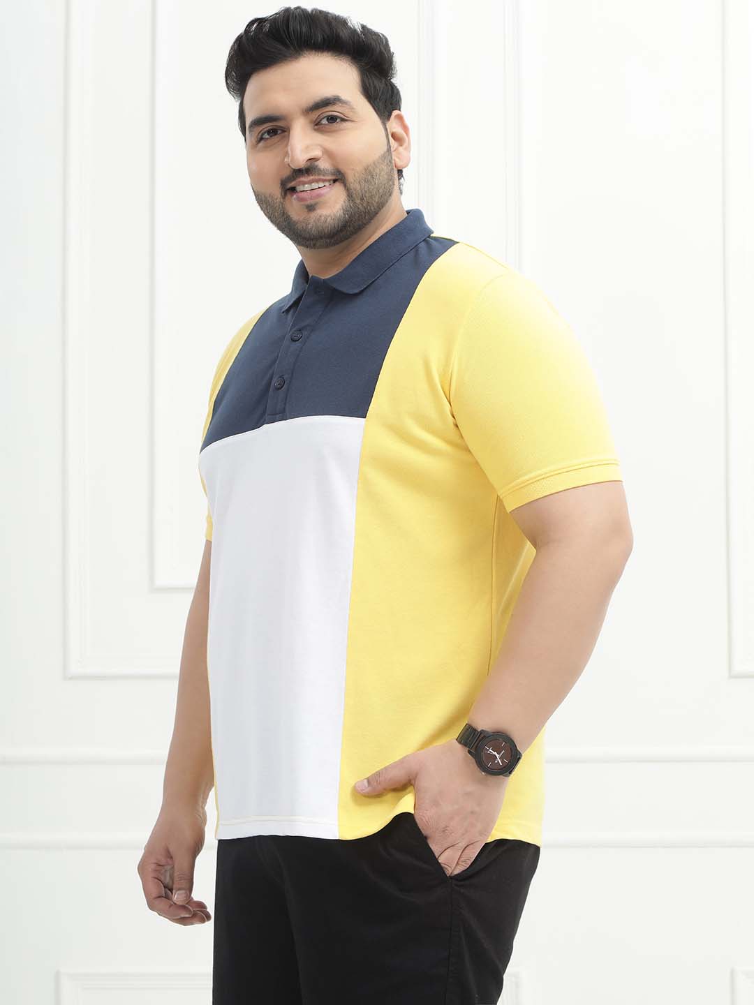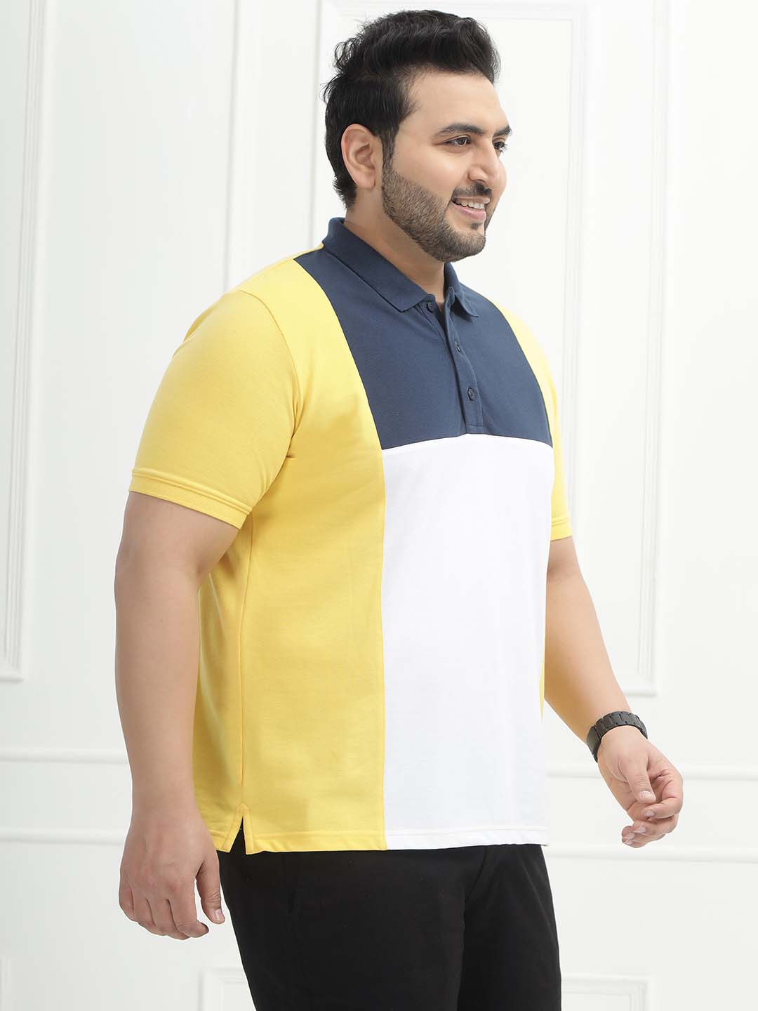 The Sunset Block Polo features a bold colorblock design combining vibrant yellow, crisp white, and deep blue for a fresh, sporty look. Made from solid pique matty fabric with a comfortable blend of 80% cotton and 20% polyester, it offers breathability with added durability and shape retention. Perfect for casual outings, weekend wear, or smart-casual styling, this polo delivers standout style with everyday comfort.