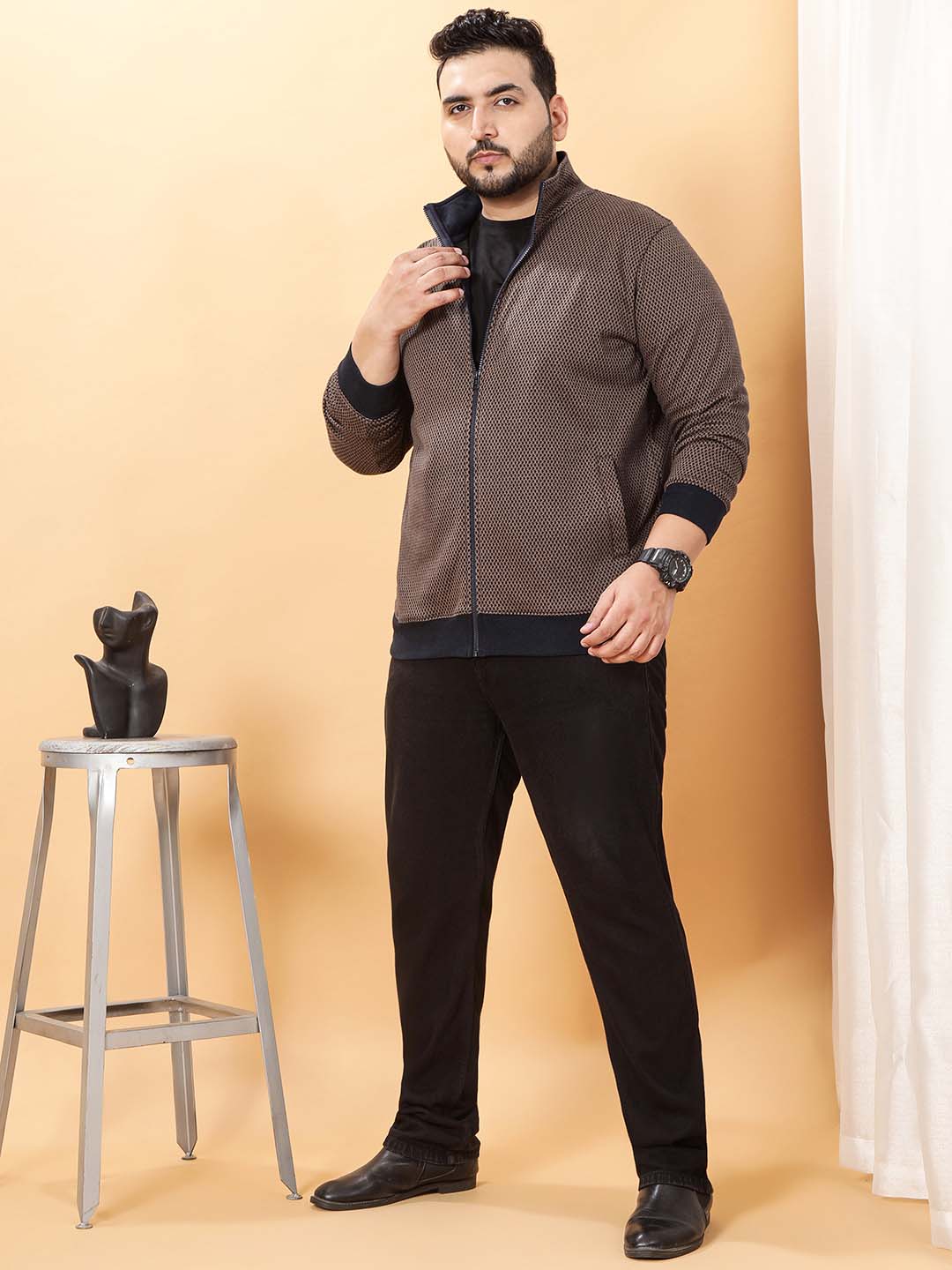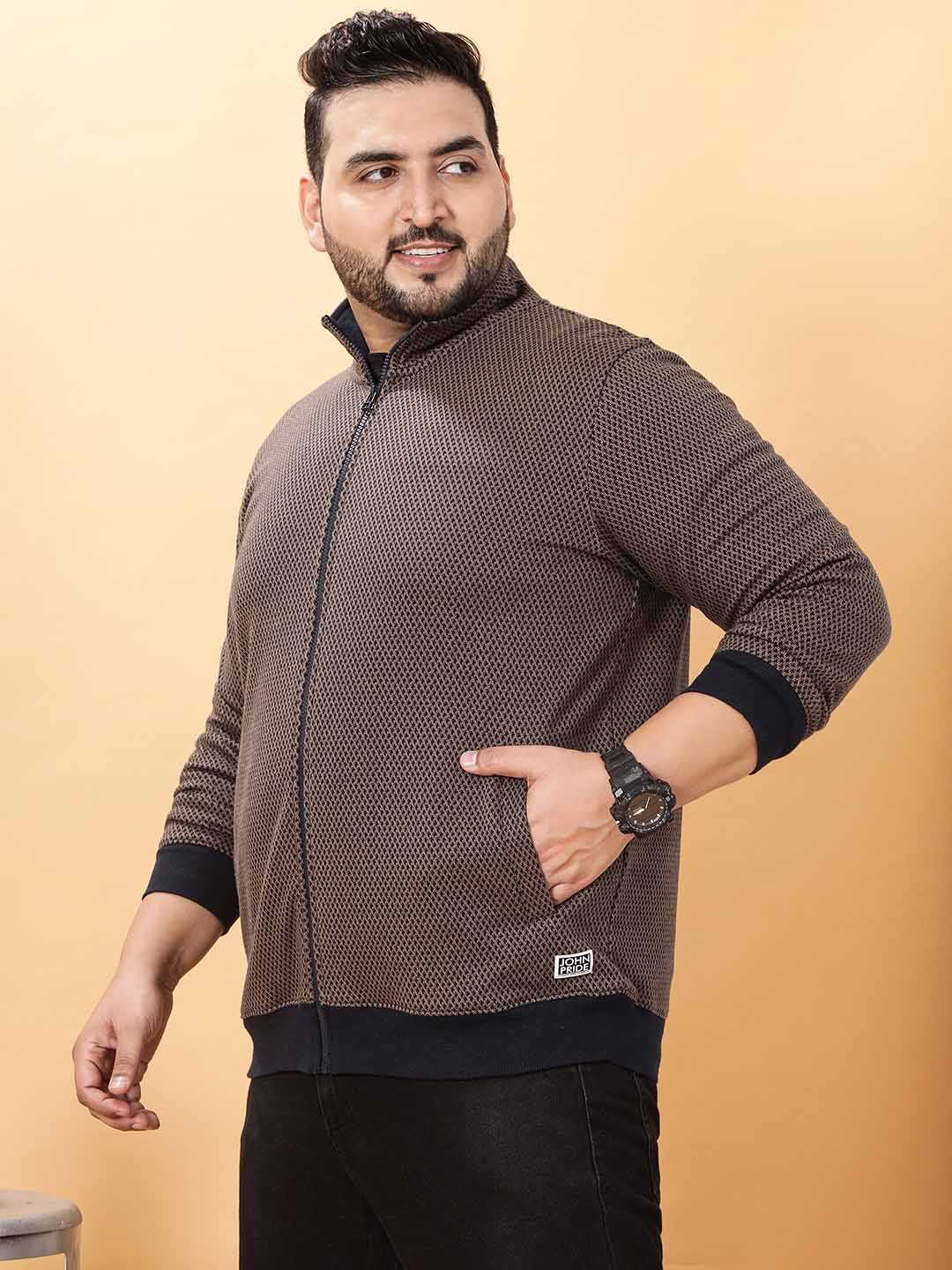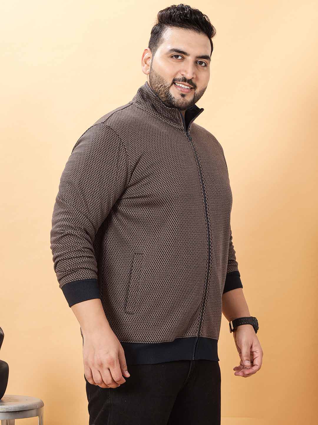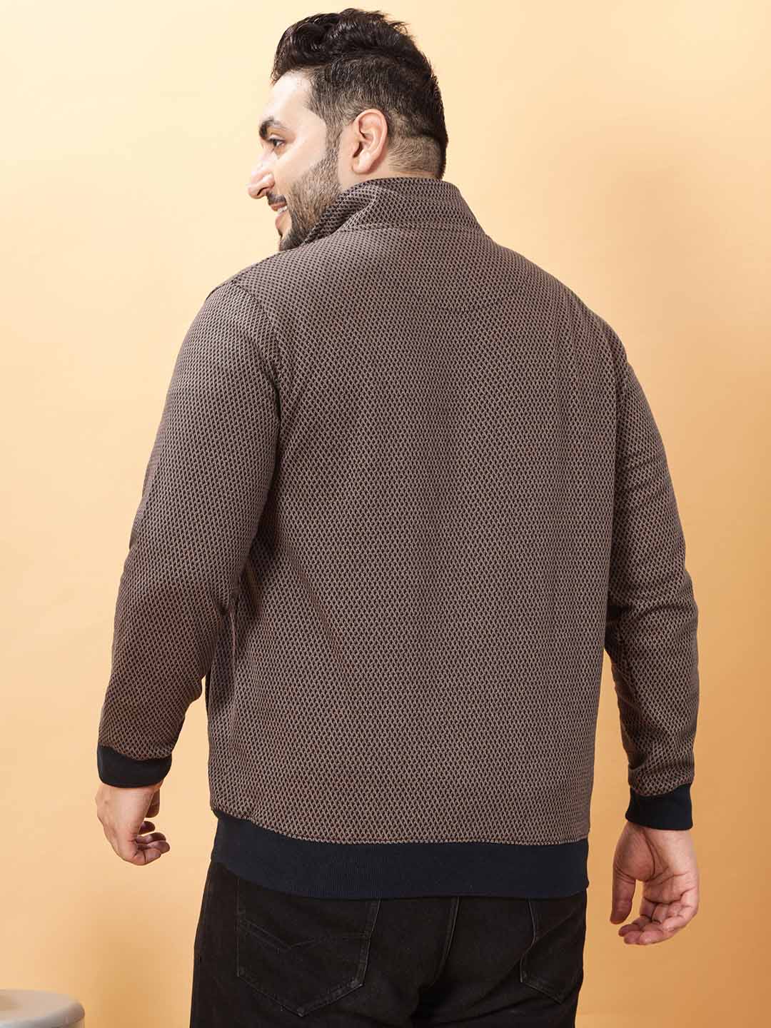 This zipper collar jacquard sweatshirt is crafted from premium fleece fabric, delivering both warmth and textured style. It features a unique jacquard weave that adds depth and visual interest to the fabric, combined with a sleek zipper collar for modern appeal. Bone-colored pockets provide a subtle, contrasting detail that enhances the overall design while offering practical storage. Ribbed cuffs and bottom hem ensure a comfortable, secure fit that retains shape with wear. Combining refined fabric craftsmanship with functional elements, this sweatshirt is perfect for sophisticated yet cozy casual wear.