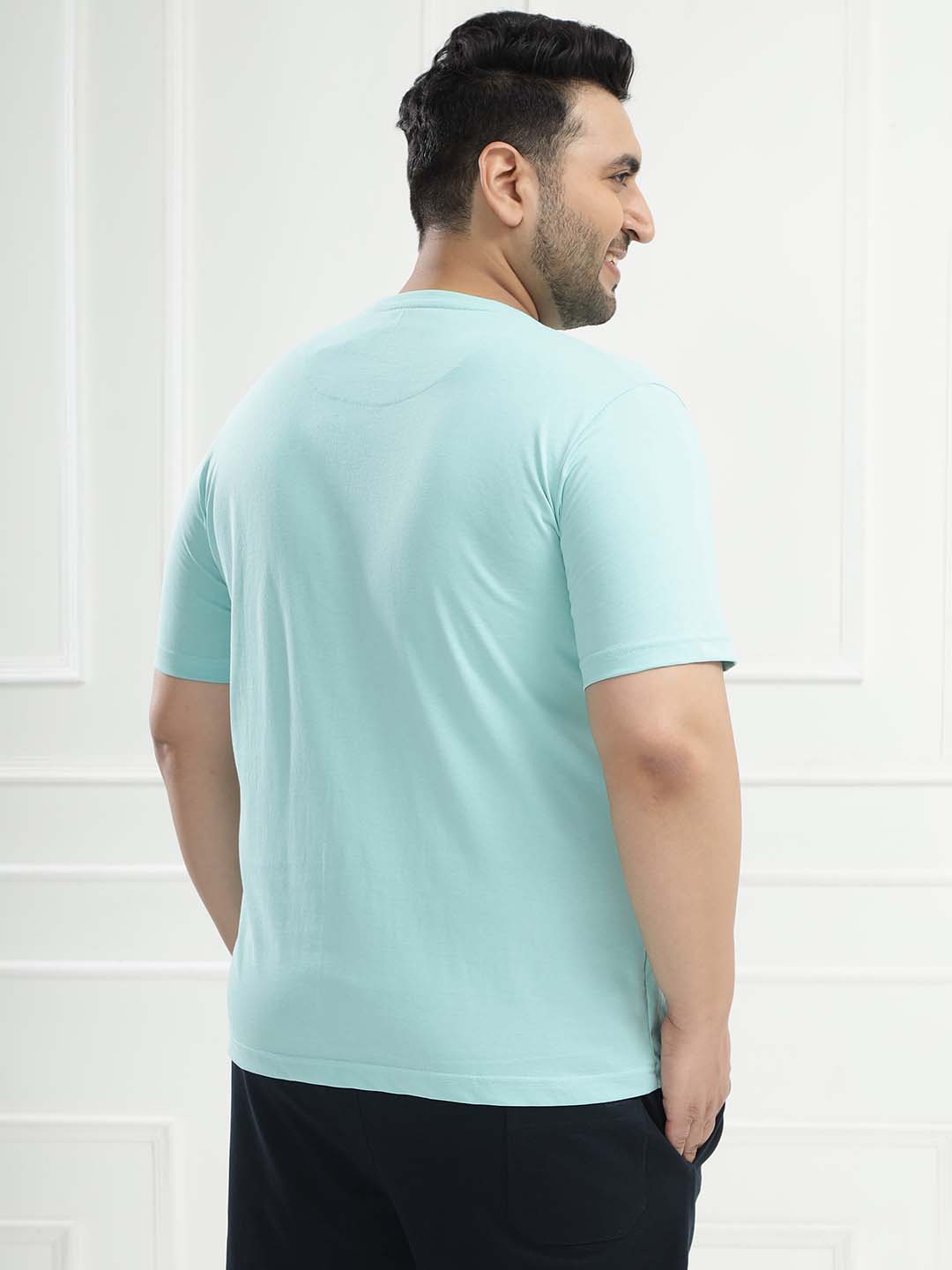 Crafted from a premium blend of 97% cotton and 3% elastane, this sea green t-shirt offers a soft feel with superior stretch for all-day comfort. The clean solid design and flexible fit create a fresh, modern look—perfect for effortless everyday styling.