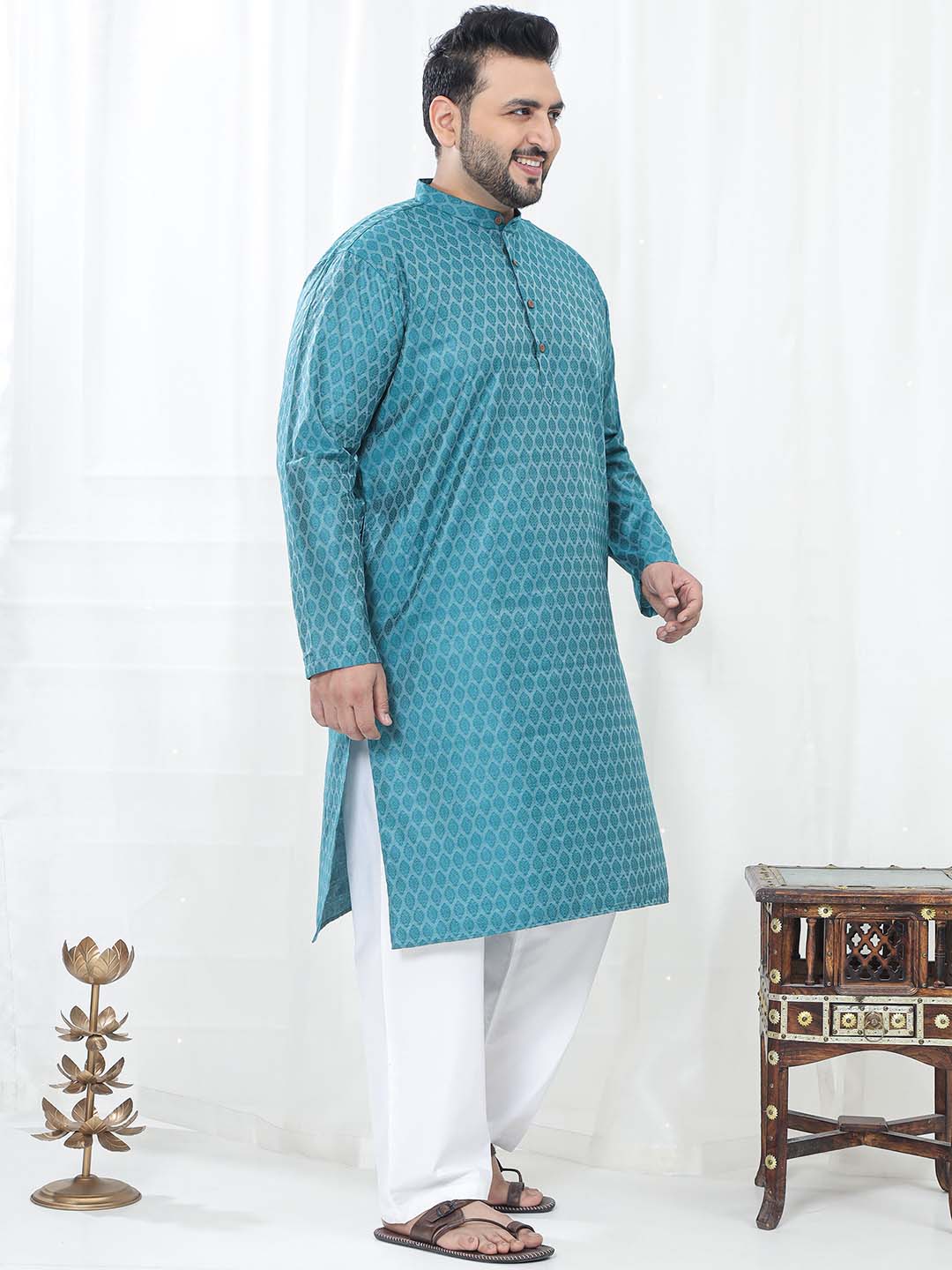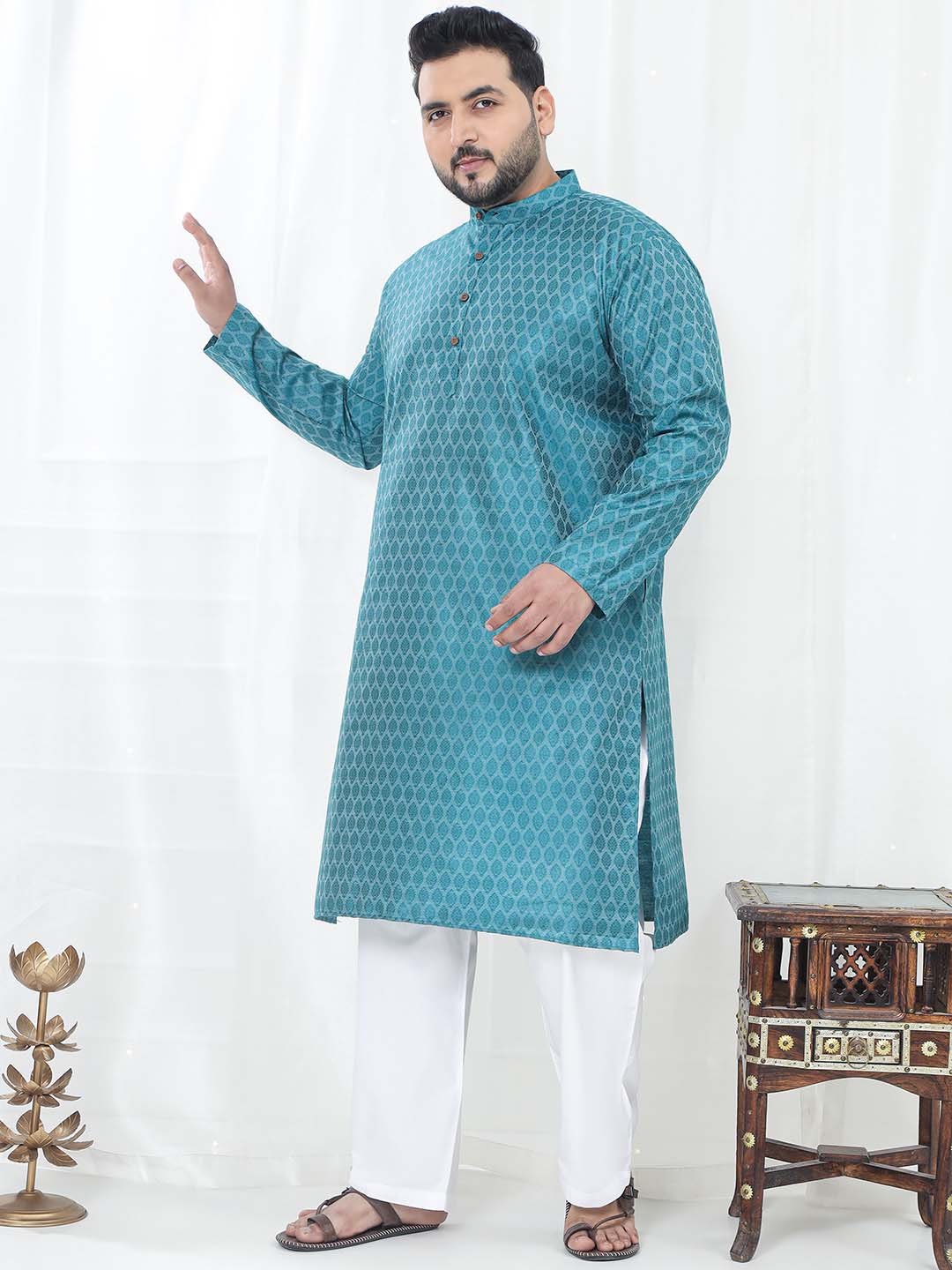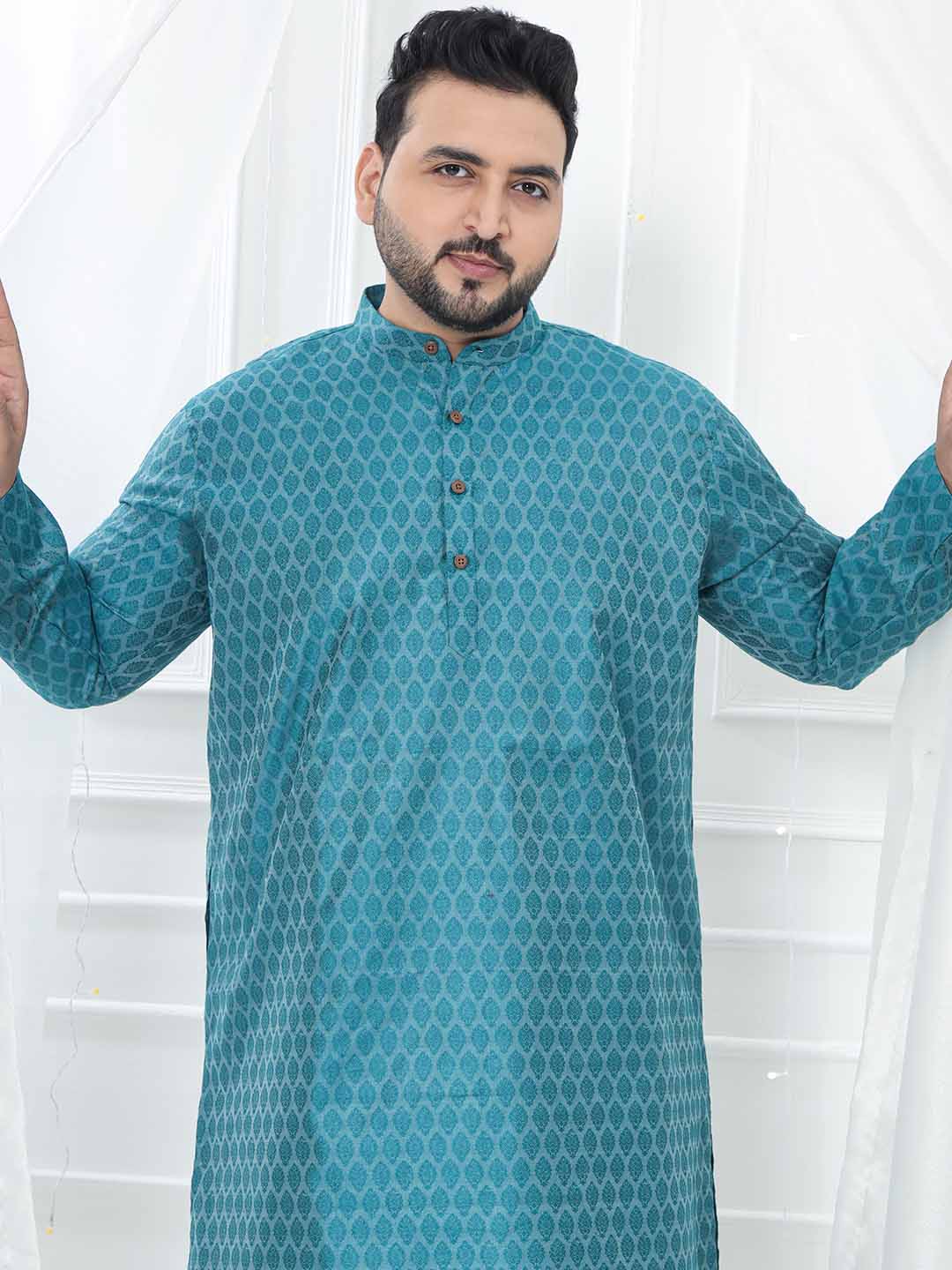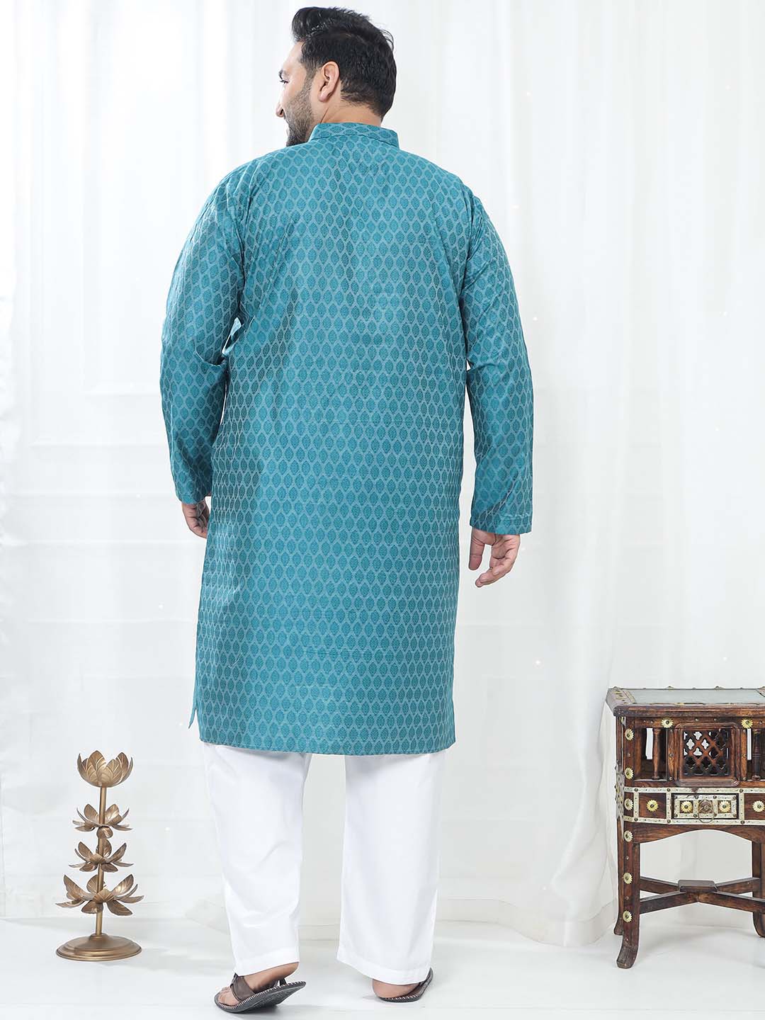 This kurta comes in a rich teal shade crafted in premium Tanchoi silk.