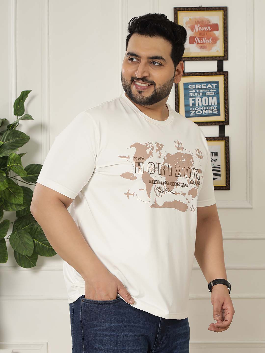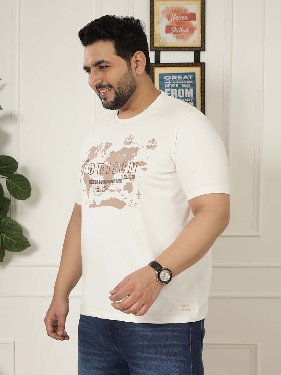 Add a refined touch to your casual wardrobe with the Ivory Crest Tee. Crafted from a premium blend of 97% Cotton and 3% Elastane, this T-shirt offers a soft feel with slight stretch for all-day comfort. The bold chest graphic print adds a stylish modern appeal, while the off-white tone gives it a clean and versatile look. Perfect for everyday wear, it pairs effortlessly with jeans, joggers, or shorts for a relaxed yet stylish outfit.